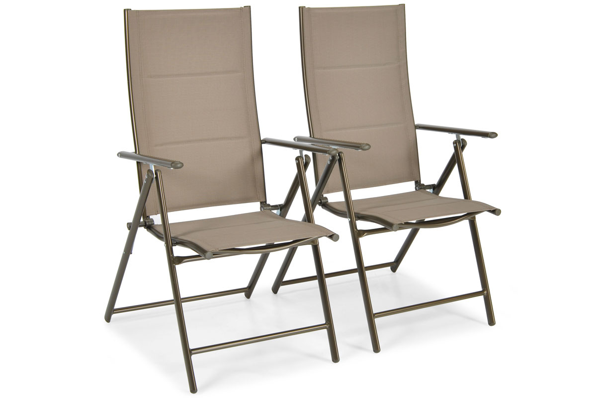 Zestaw obejmuje aluminiowe krzesła o lekkiej, ale solidnej konstrukcji. Rama wykonana z malowanego proszkowo aluminium jest odporna na korozję. Krzesła zachowują trwałość nawet podczas zmiennej pogody. Siedziska i oparcia z tkaniny textilene są wygodne i przewiewne, co poprawia komfort podczas ciepłych dni. Oparcia posiadają 8-stopniową regulację, dzięki której łatwo dopasujesz je do swoich potrzeb. Krzesła są składane, co ułatwia ich przechowywanie i transport.