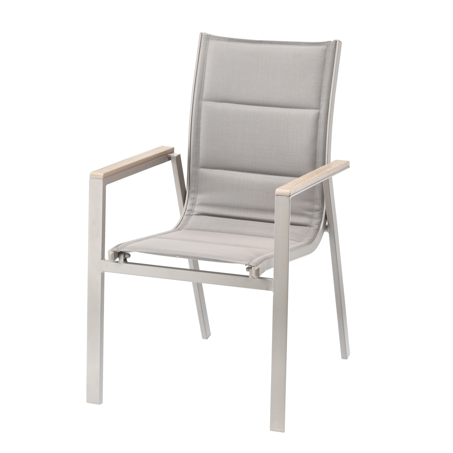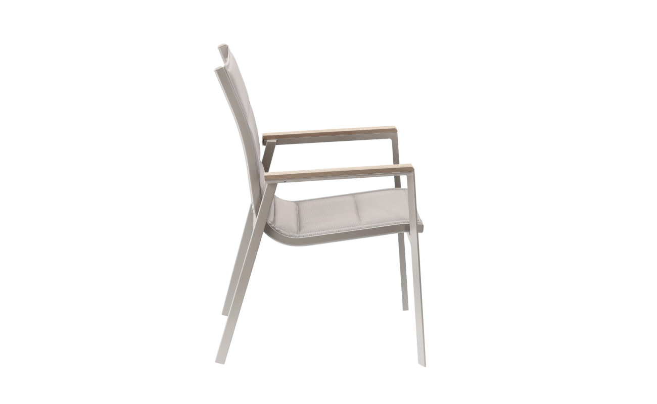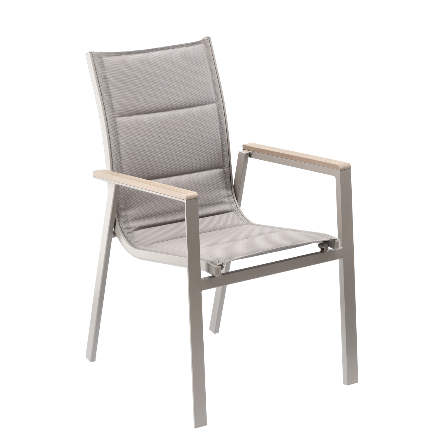 Siedzisko i oparcie wykonano z wysokiej jakości siatki Textilene 2×1 z miękką wyściółką, która dopasowuje się do kształtu ciała. Dzięki temu aluminiowe ogrodowe krzesło  zapewnia wyjątkowy komfort nawet podczas długiego siedzenia.