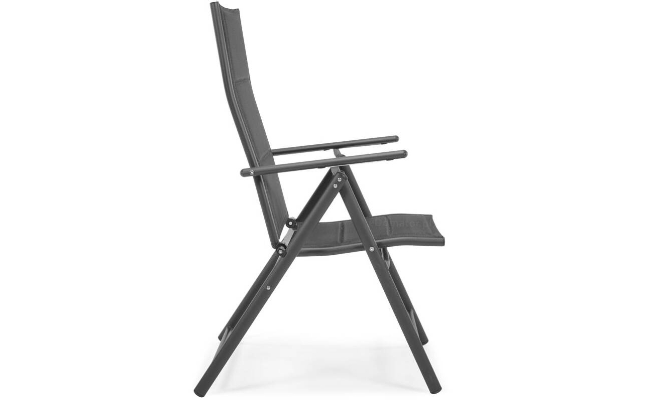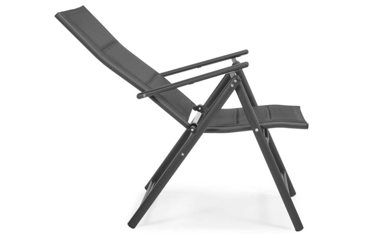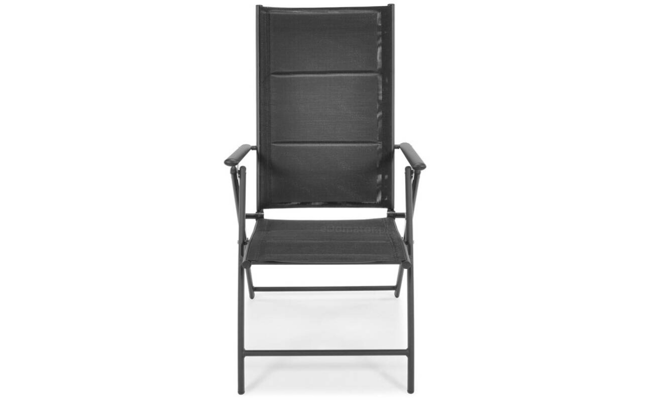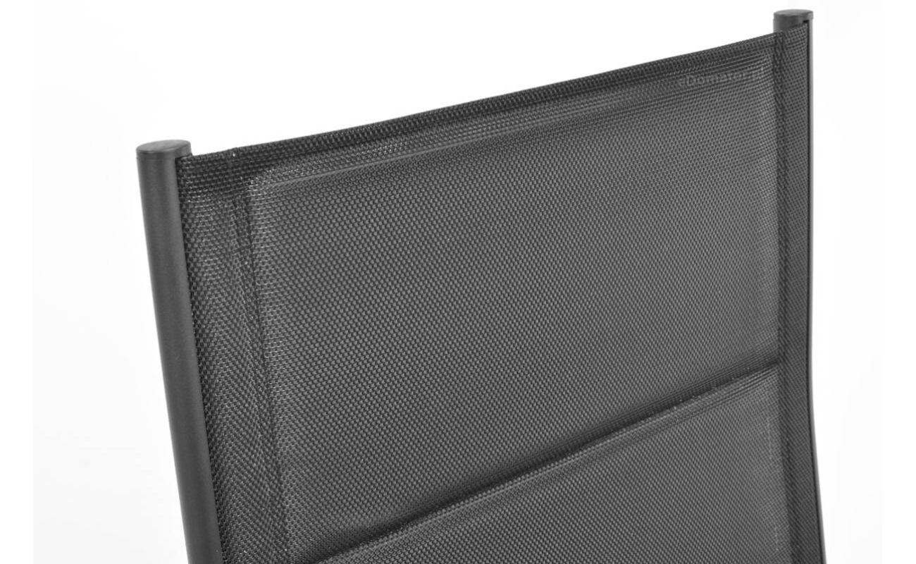 Siedzisko i oparcie wykonane są z nowoczesnej tkaniny textilene – przewiewnej, elastycznej i odpornej na wilgoć. Materiał dopasowuje się do kształtu ciała, zapewniając wygodę nawet bez poduszki. A ponieważ szybko schnie, możesz korzystać z krzesła już chwilę po deszczu.