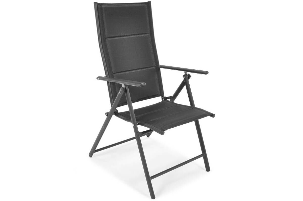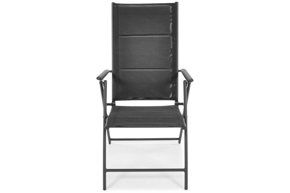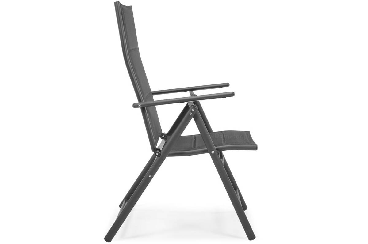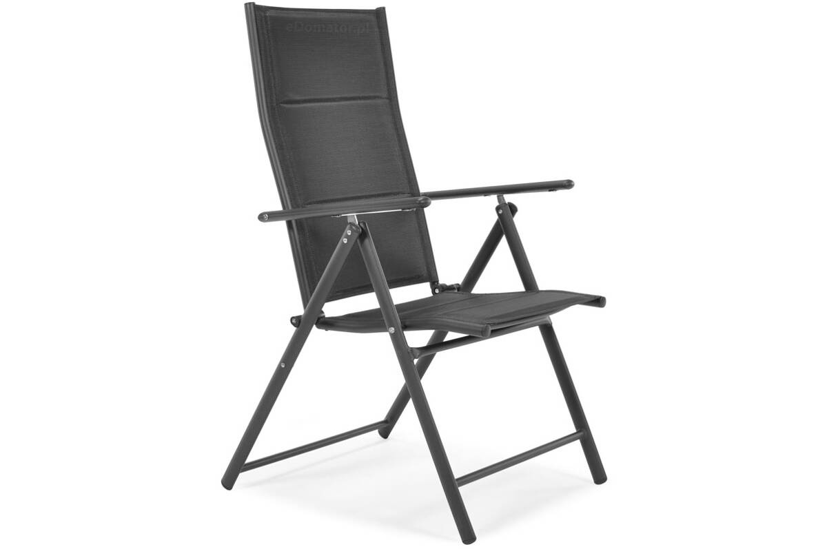 Siedzisko i oparcie wykonane są z nowoczesnej tkaniny textilene – przewiewnej, elastycznej i odpornej na wilgoć. Materiał dopasowuje się do kształtu ciała, zapewniając wygodę nawet bez poduszki. A ponieważ szybko schnie, możesz korzystać z krzesła już chwilę po deszczu.
