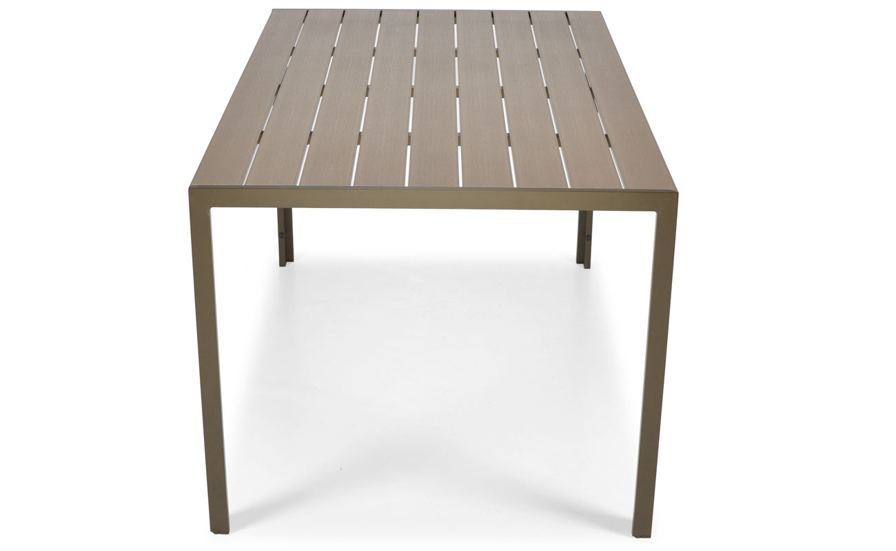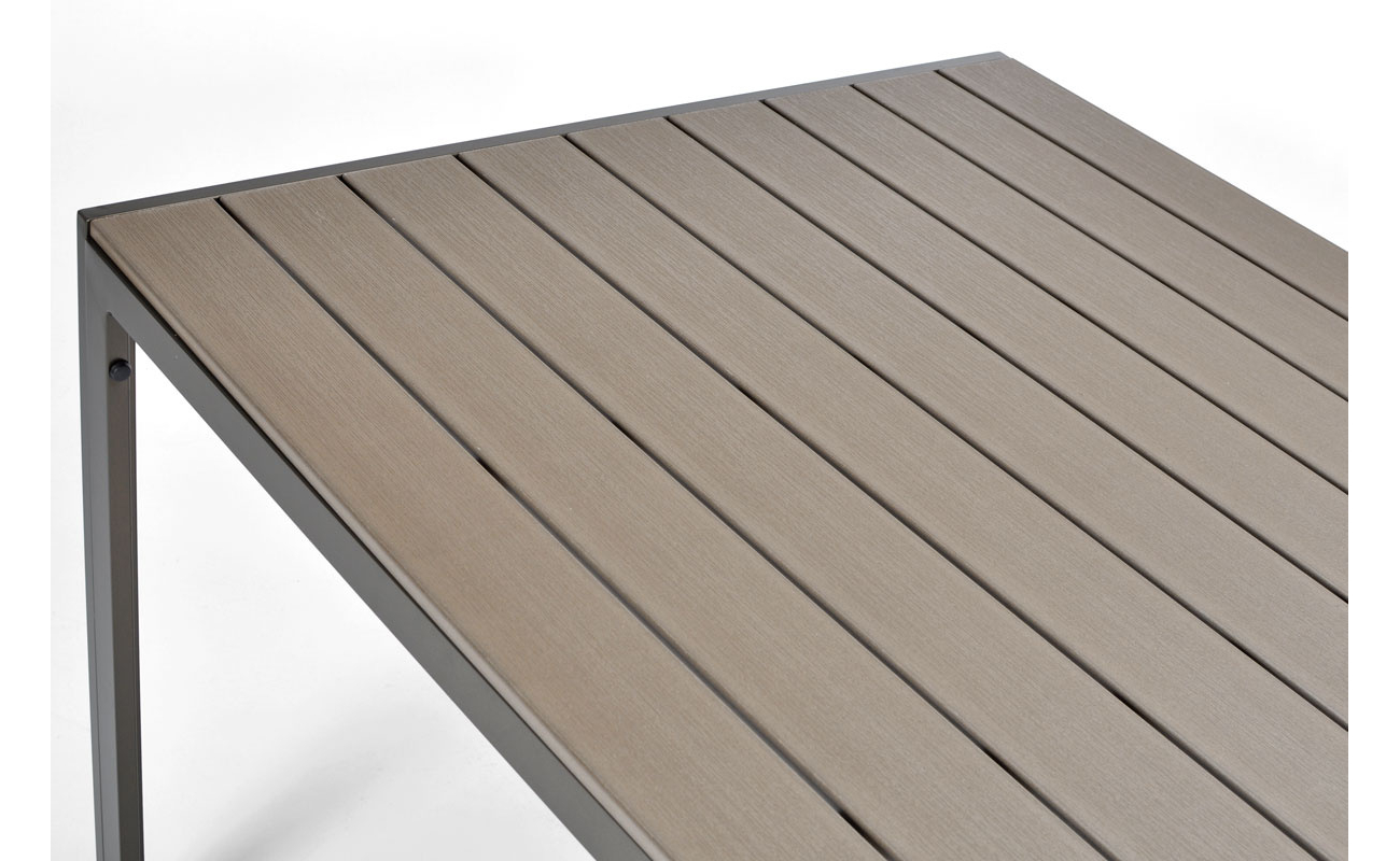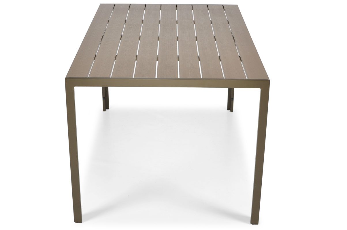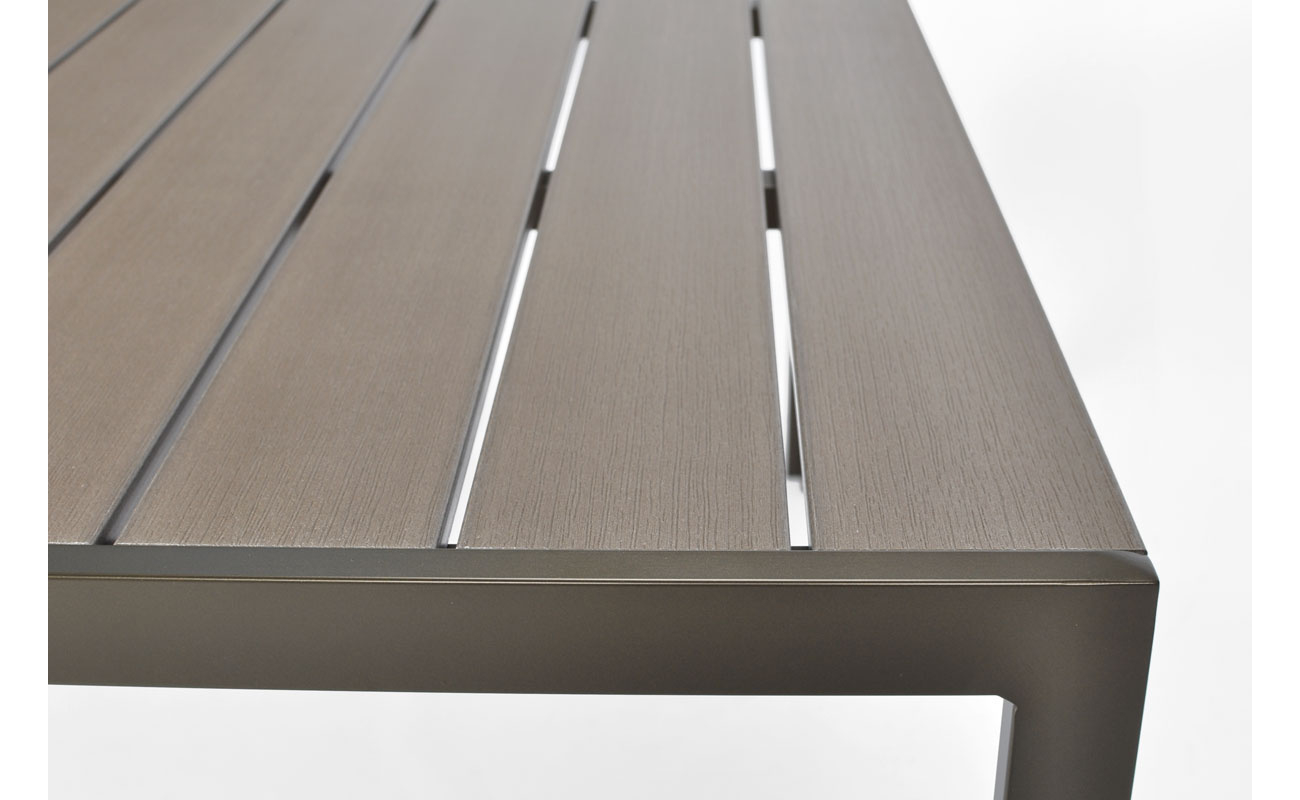 Ten nowoczesny brązowy stół aluminiowy ogrodowy to idealne rozwiązanie dla tych, którzy cenią sobie elegancję, a zarazem szukają trwałych rozwiązań na lata. Aluminiowa konstrukcja zapewnia stabilność, odporność na korozję oraz łatwość w utrzymaniu. Co więcej, blat wykonany z deski polywood doskonale imituje drewno, a jednocześnie nie wymaga impregnacji – dzięki temu prezentuje się stylowo przez długie sezony.
