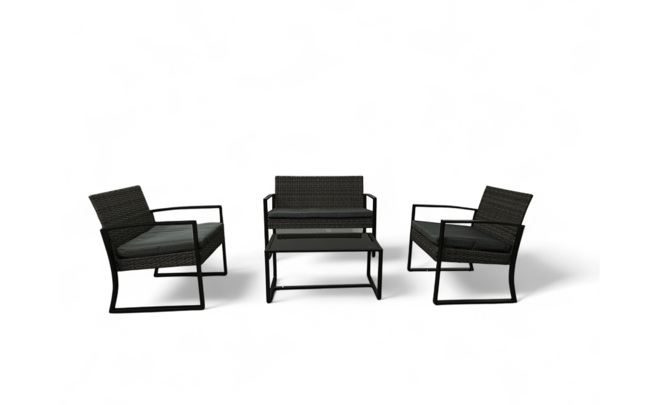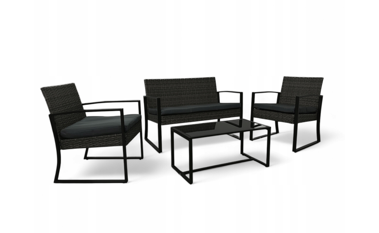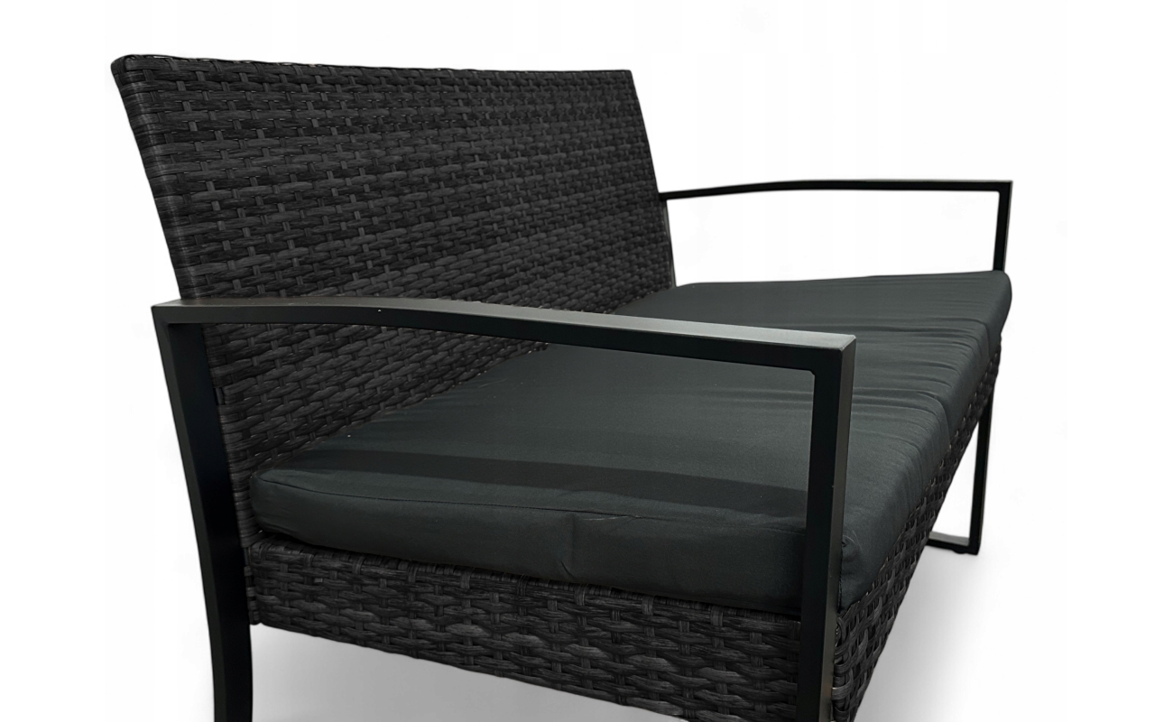 Wygodny czarny tarasowy zestaw technorattanowy ogrodowy stworzony z bardzo wysokiej jakości materiałów, dzięki czemu sprawdzi się na lata.