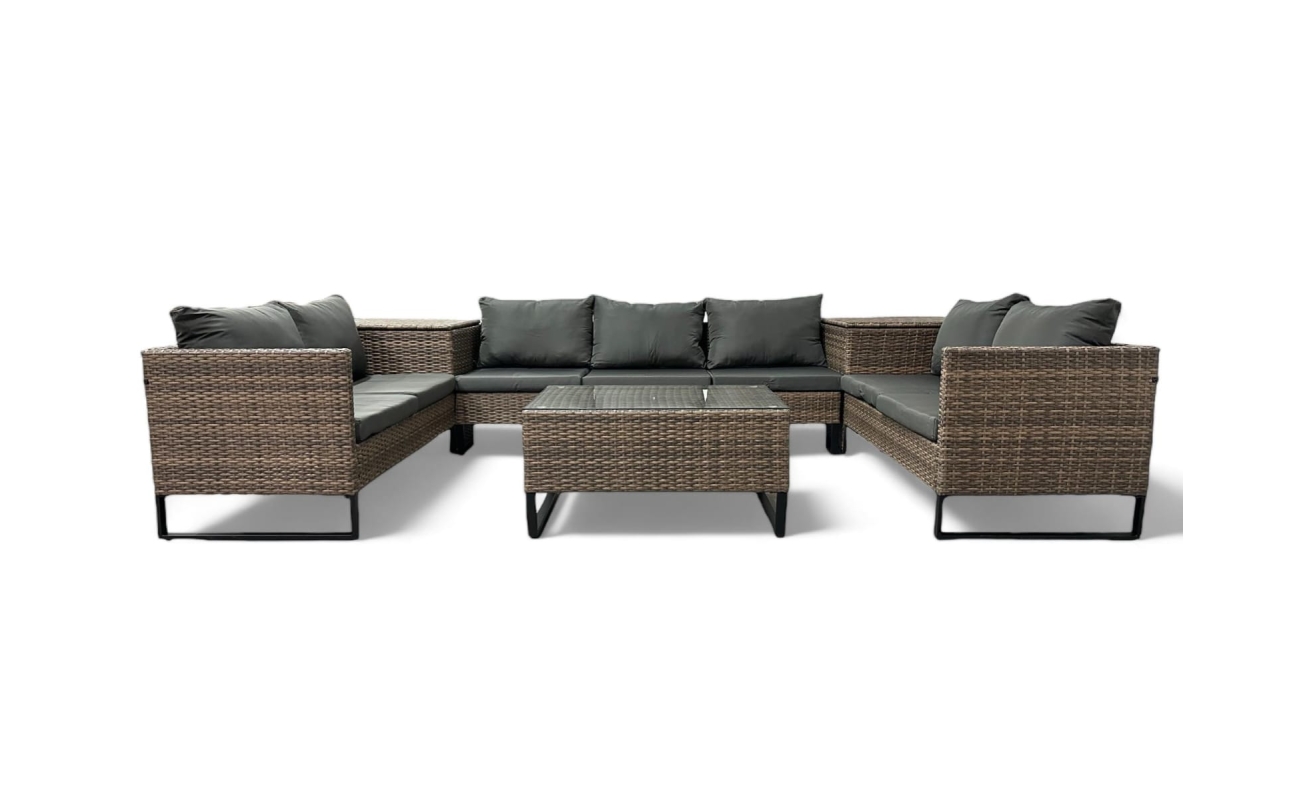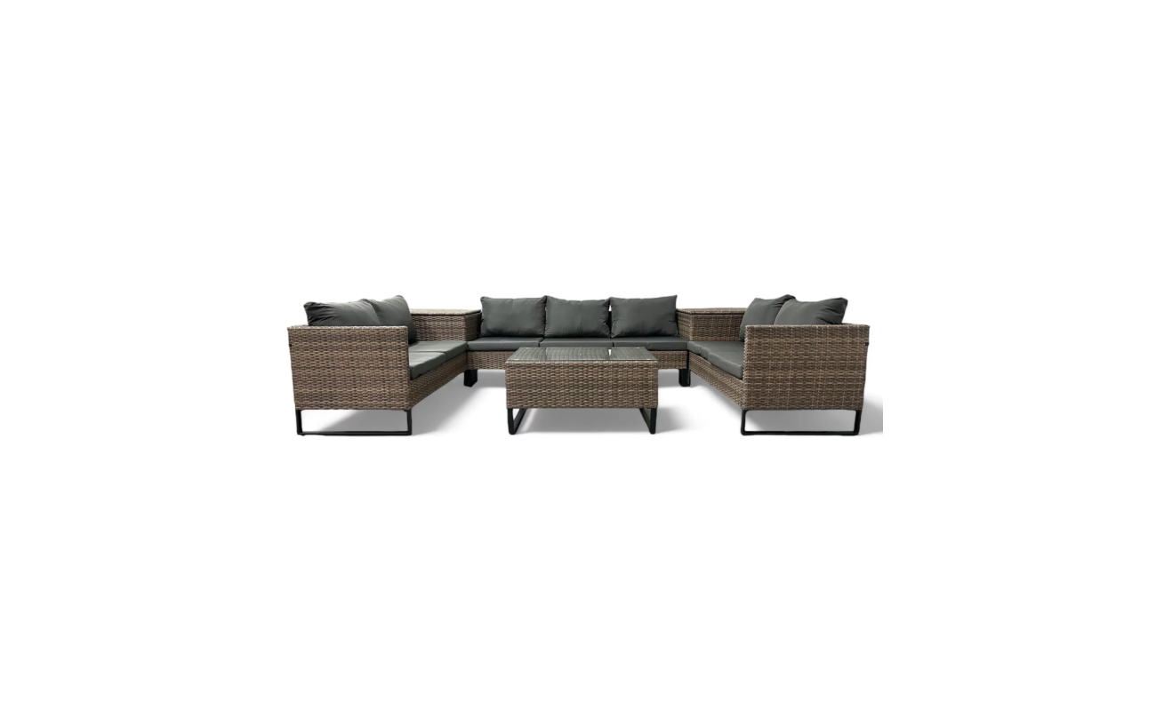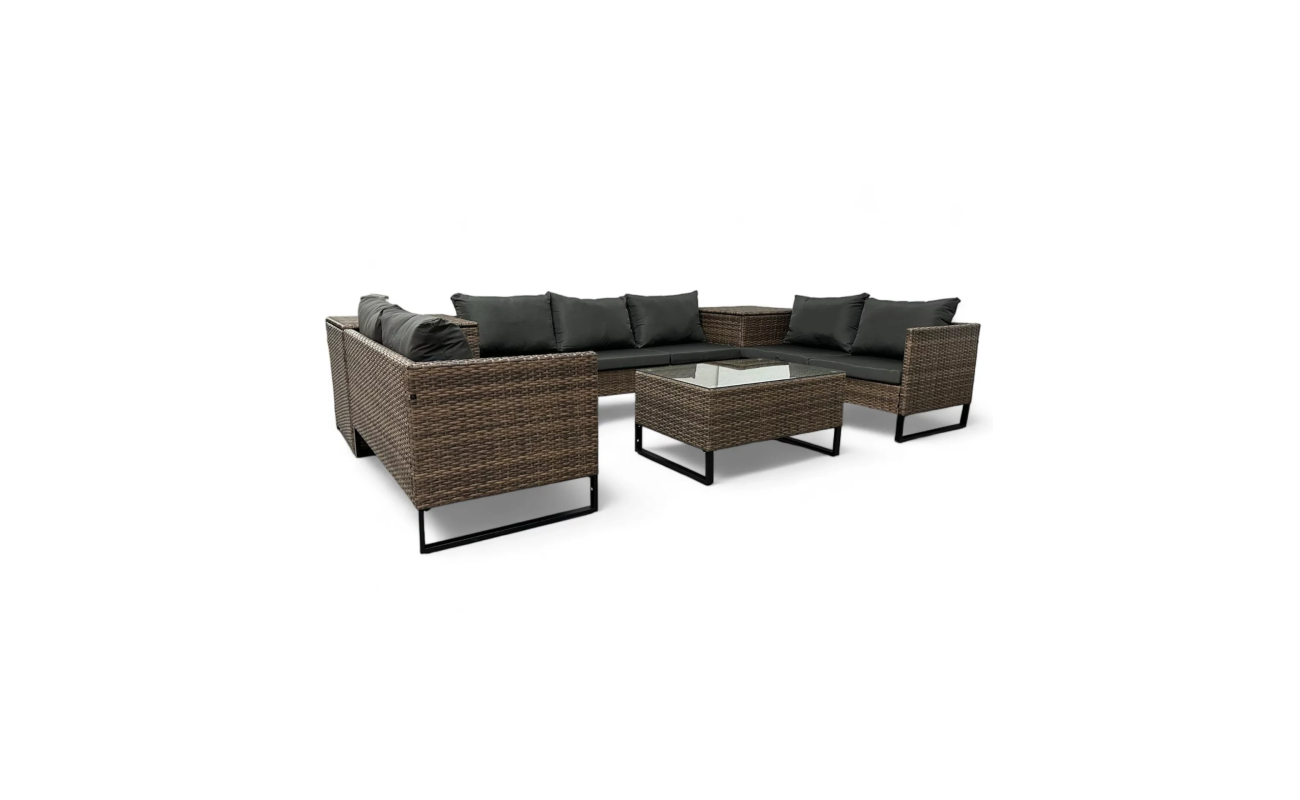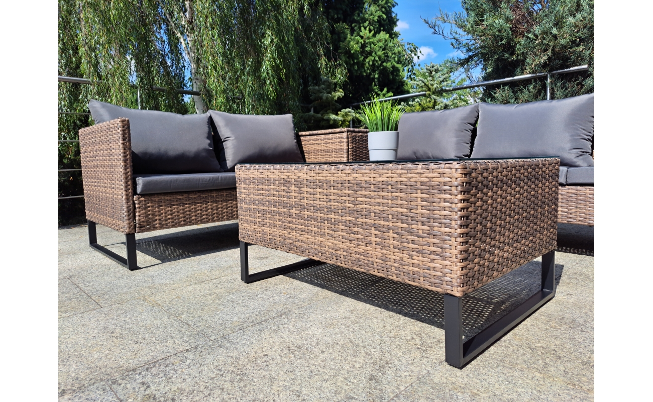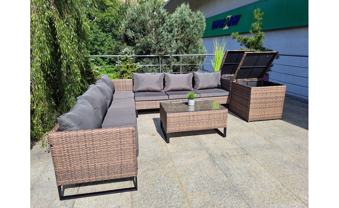 Duży narożnik ogrodowy modułowy w kolorze jasny brąz to połączenie stylu i wygody. Z jednej strony zapewnia on komfort i funkcjonalność, z drugiej wyróżnia się nowoczesnym designem. Dzięki swojej modułowej konstrukcji, mebel sprawdzi się w wielu układach przestrzennych – zarówno do codziennego wypoczynku, jak i do spotkań w większym gronie.
