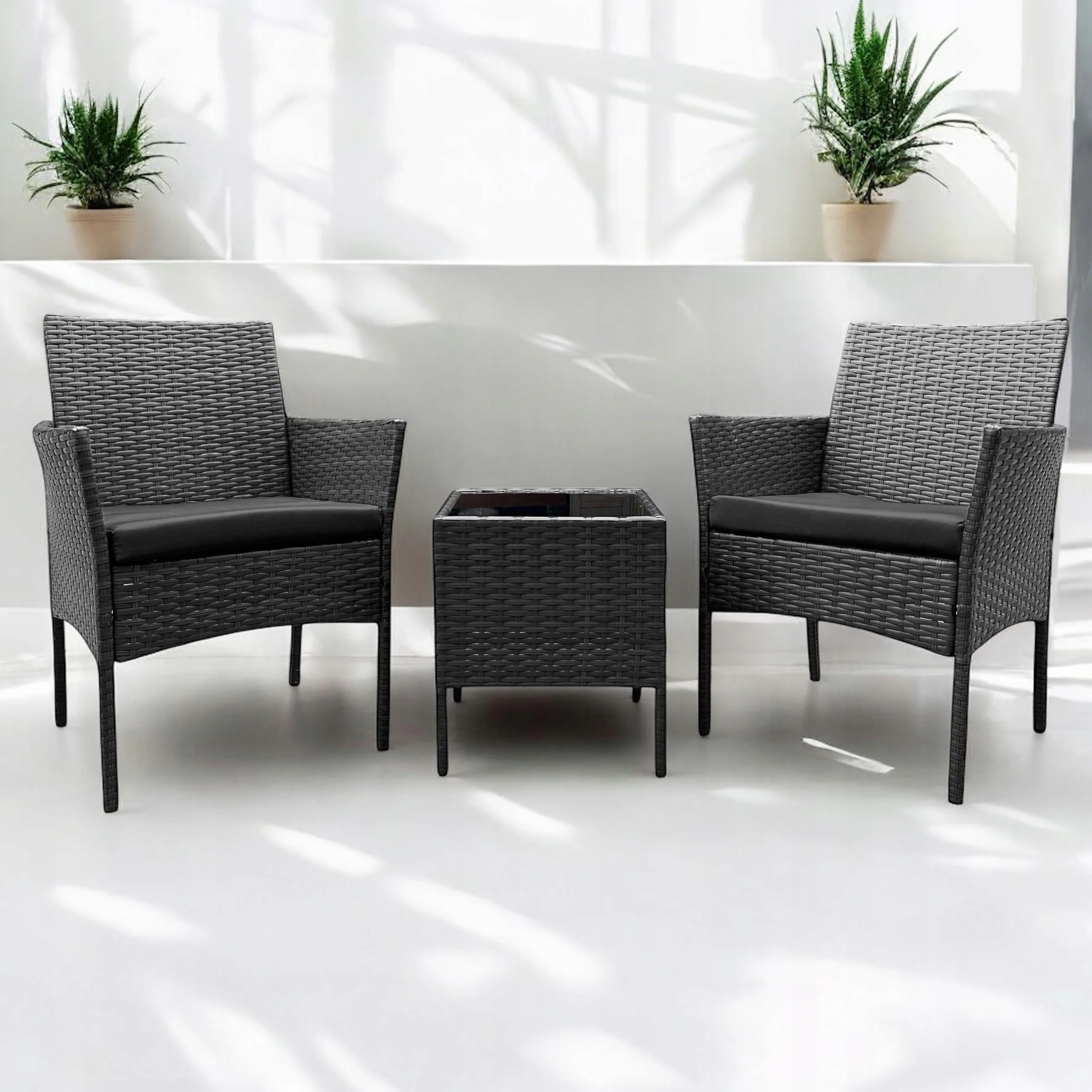 Dwuosobowy czarny zestaw technorattanowy – kompaktowy komfort na Twój taras, balkon lub ogród