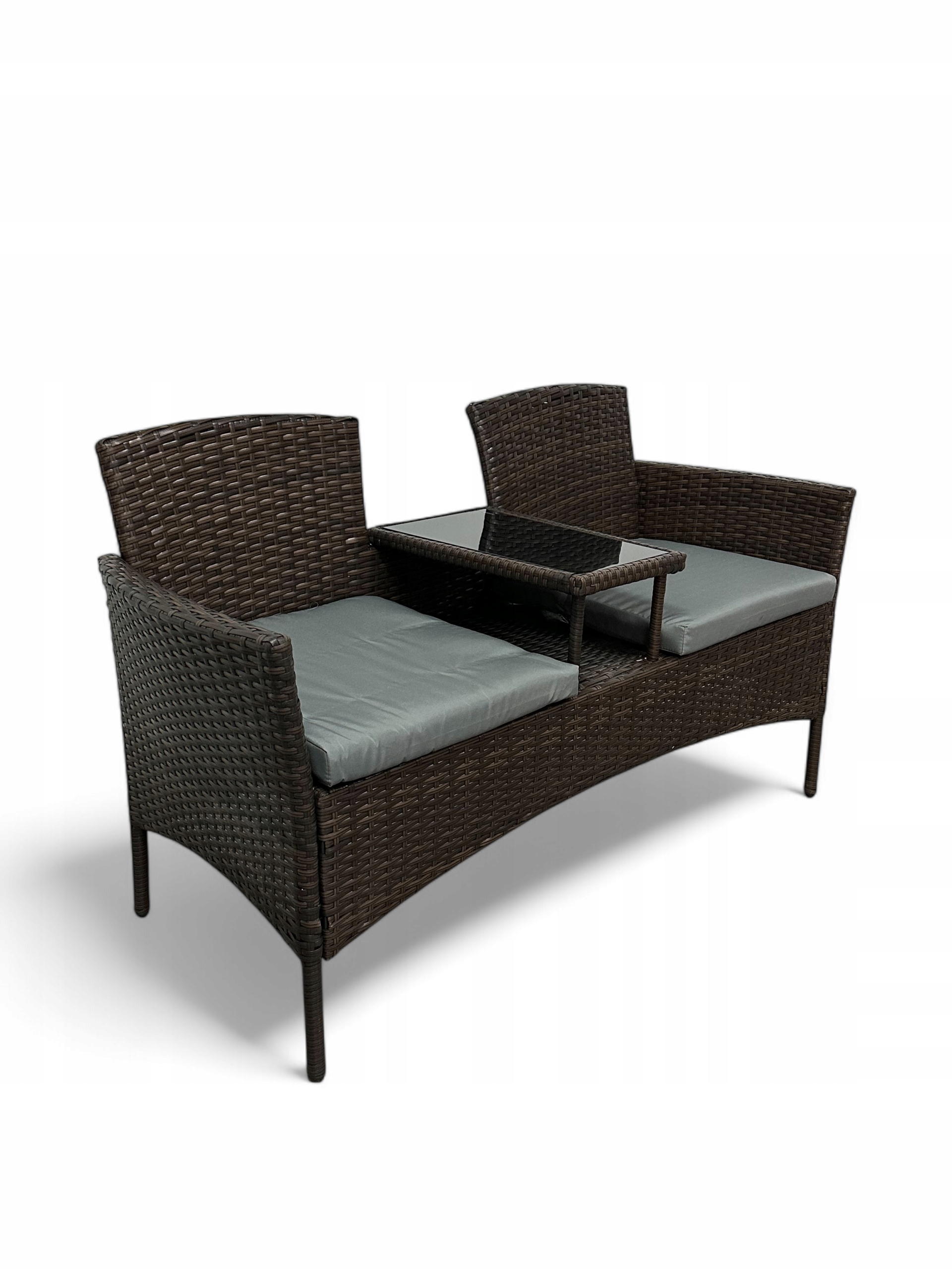 W skład kompletu wchodzą dwa komfortowe fotele połączone praktycznym stolikiem z czarnym szkłem hartowanym. Co więcej, dołączone miękkie poduszki zapewniają dodatkowy komfort i sprawiają, że nawet dłuższy odpoczynek staje się prawdziwą przyjemnością.