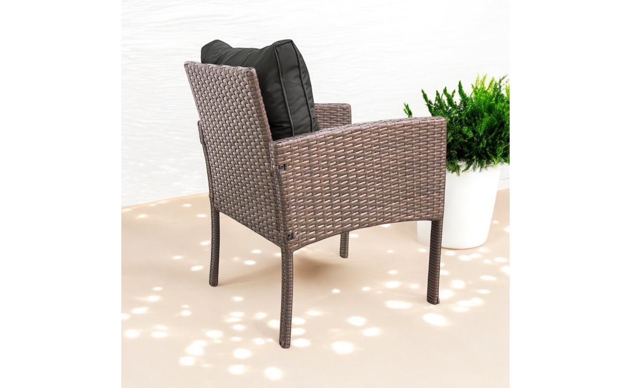 Fotel ogrodowy technorattanowy jasny brąz z szarą poduszką – funkcjonalność, komfort i styl w jednym