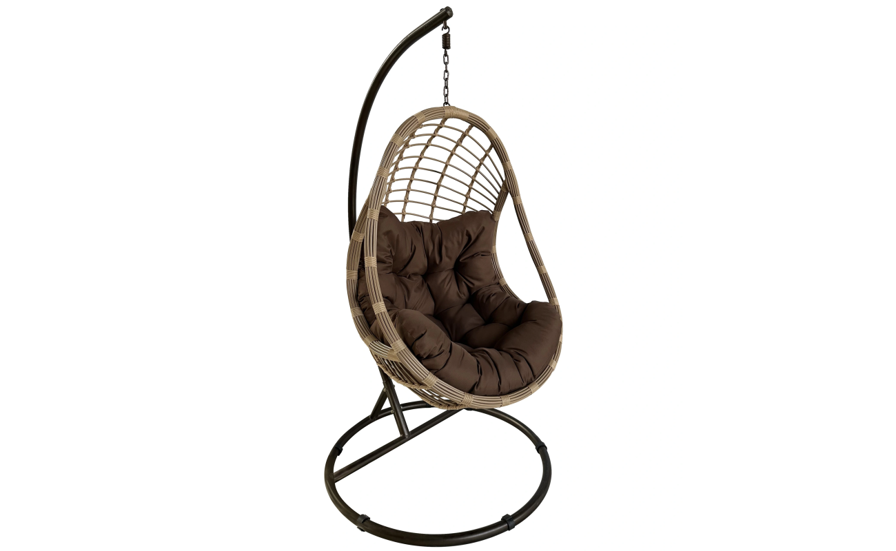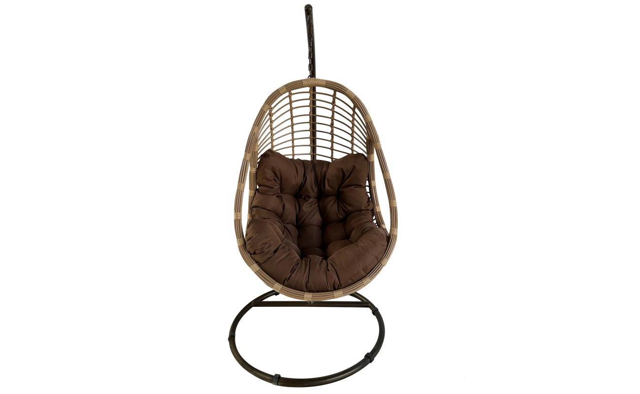 Niezwykle wygodny fotel wiszący ogrodowy beżowy Malibu z pikowaną ciemnobrązową poduszką. Dzięki niemu stworzysz unikalne miejsce, które będzie komfortową przestrzenią dla Ciebie i Twojej rodziny oraz zachwyci wszystkich gości. Ten elegancki fotel nie tylko urozmaici wygląd Twojego tarasu czy ogrodu, ale także stworzy idealne miejsce do relaksu na świeżym powietrzu.