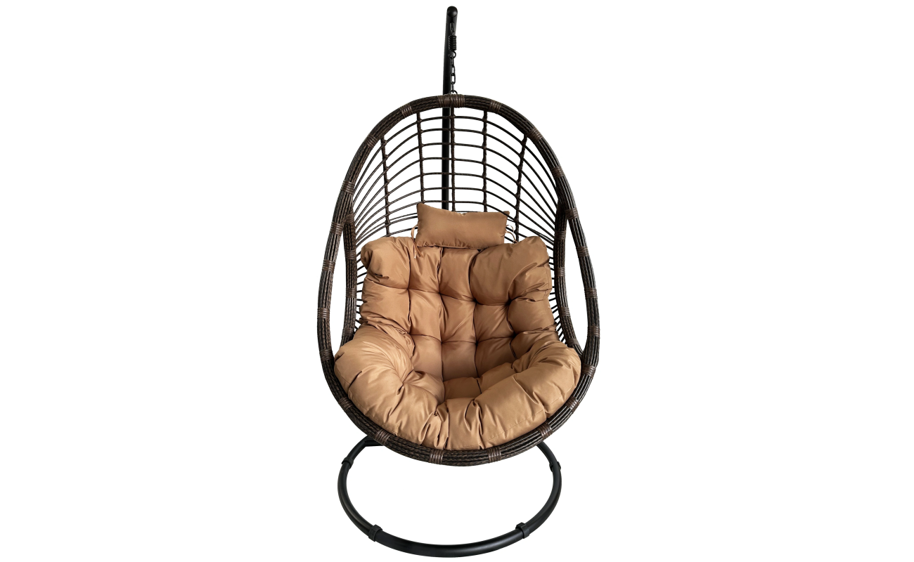 Fotel wiszący brązowy XXL Malibu z jasnobrązową poduszką w rozmiarze XXL