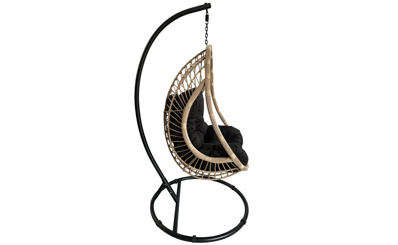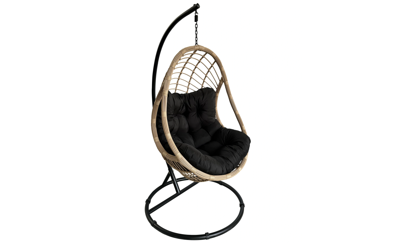 Fotel kokon ogrodowy wiszący huśtawka Malibu beżowo-czarny