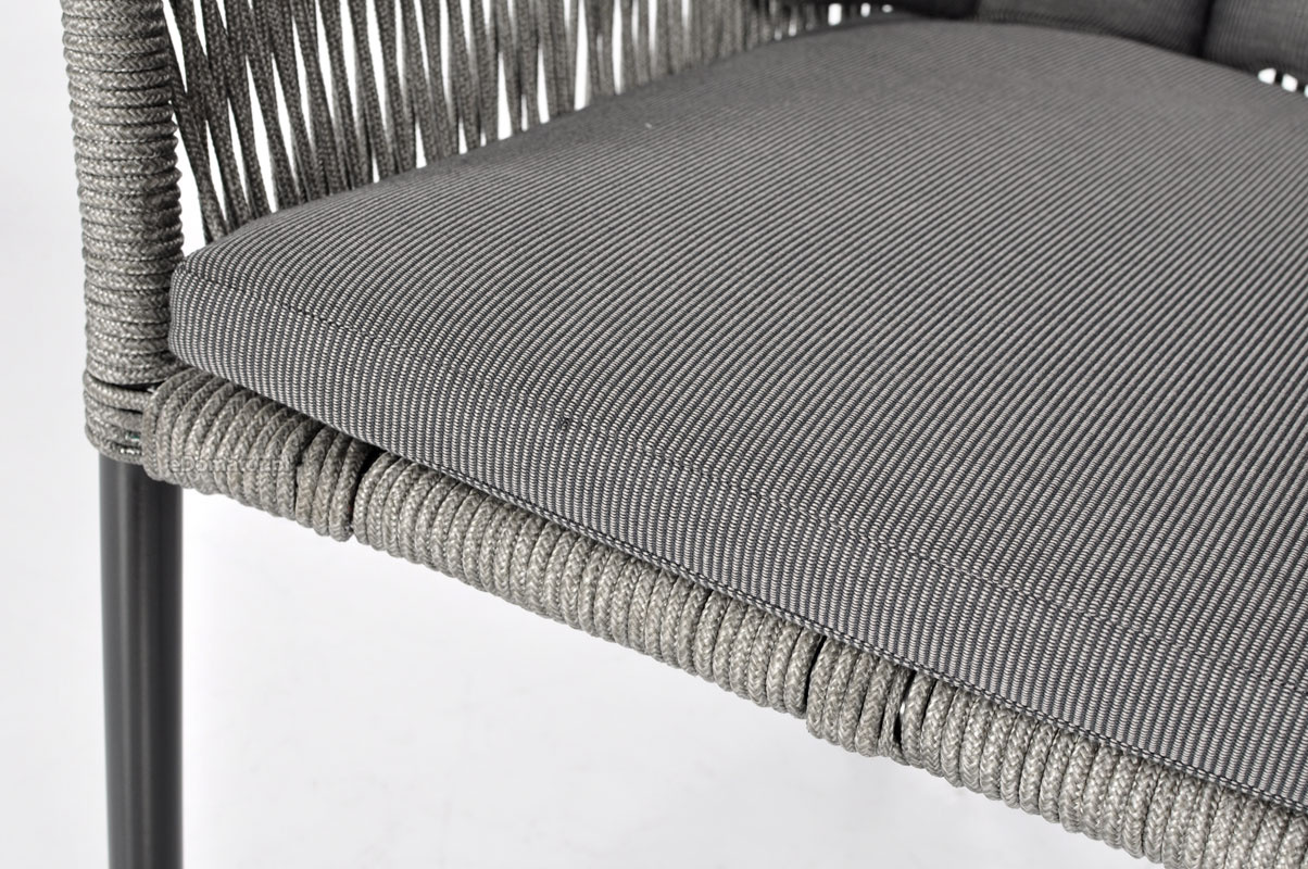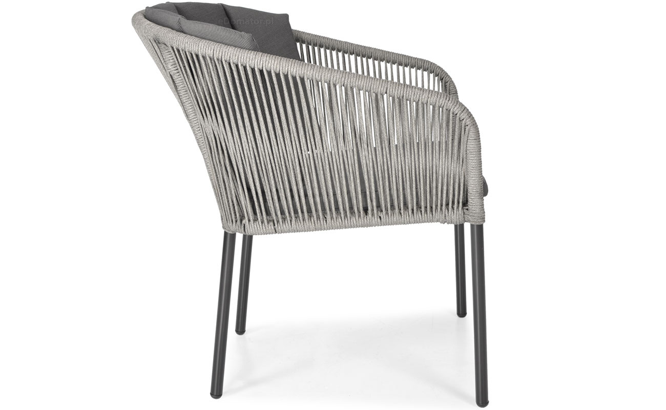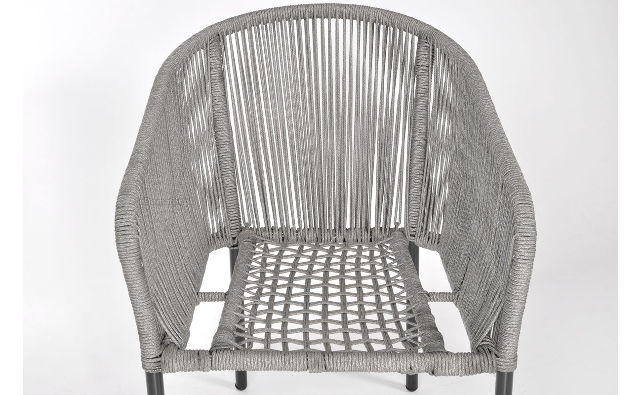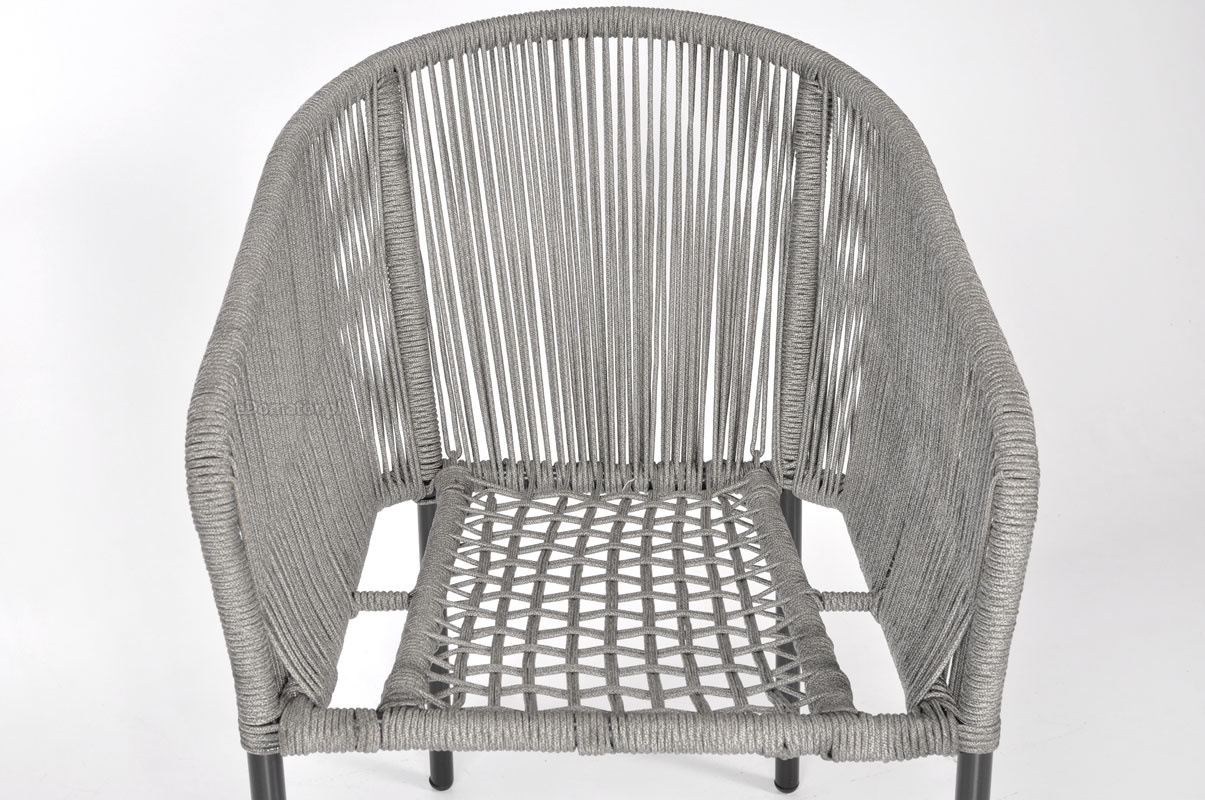 Materiał wykonania: krzesła: splot linowy, konstrukcja stalowa, stół: aluminium