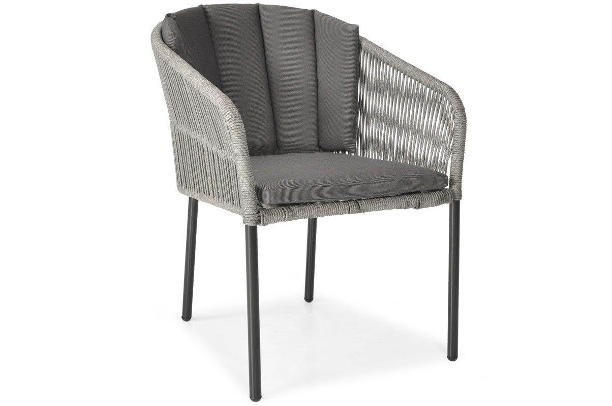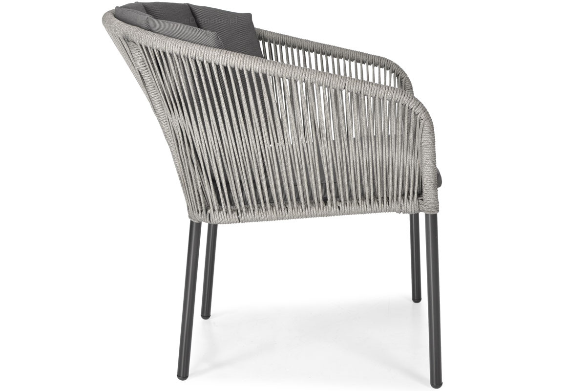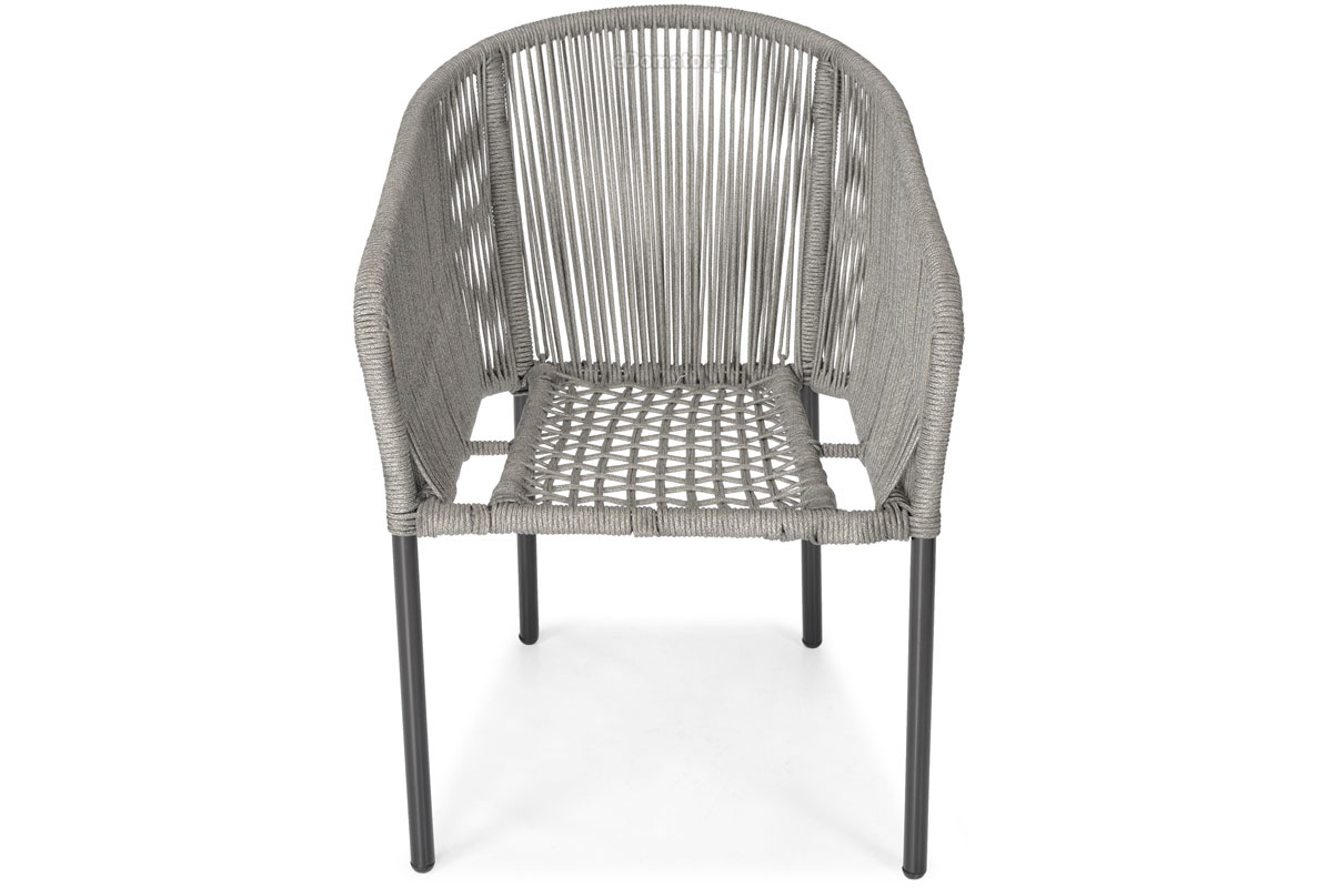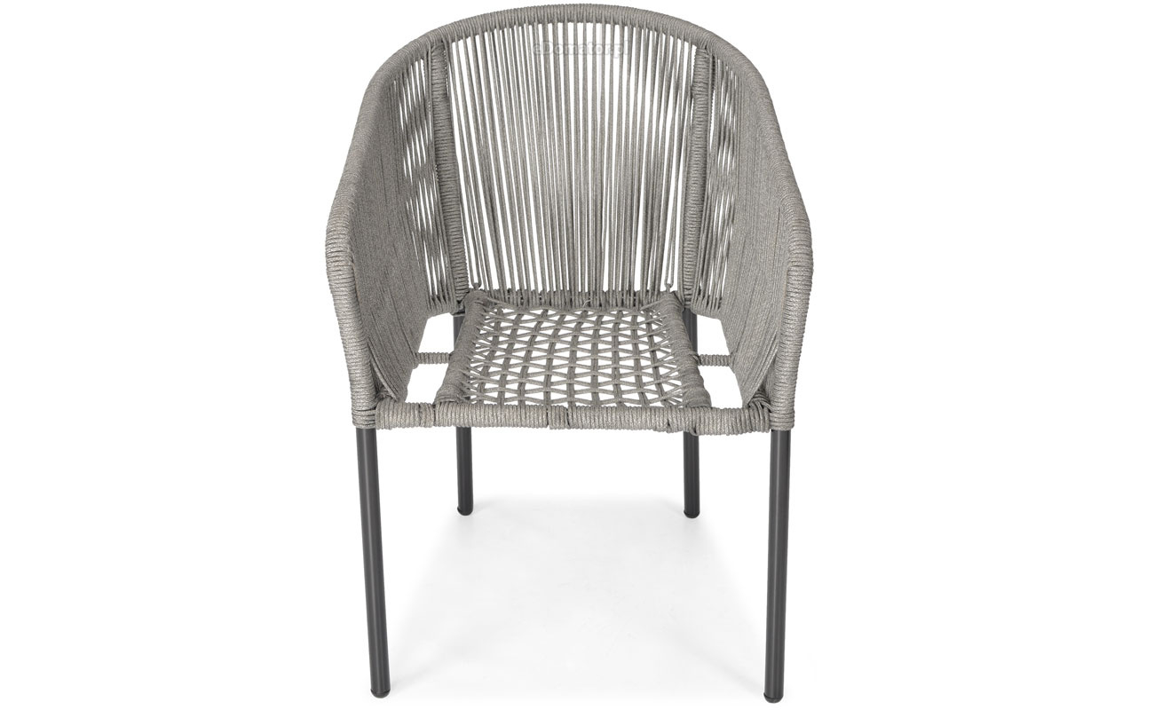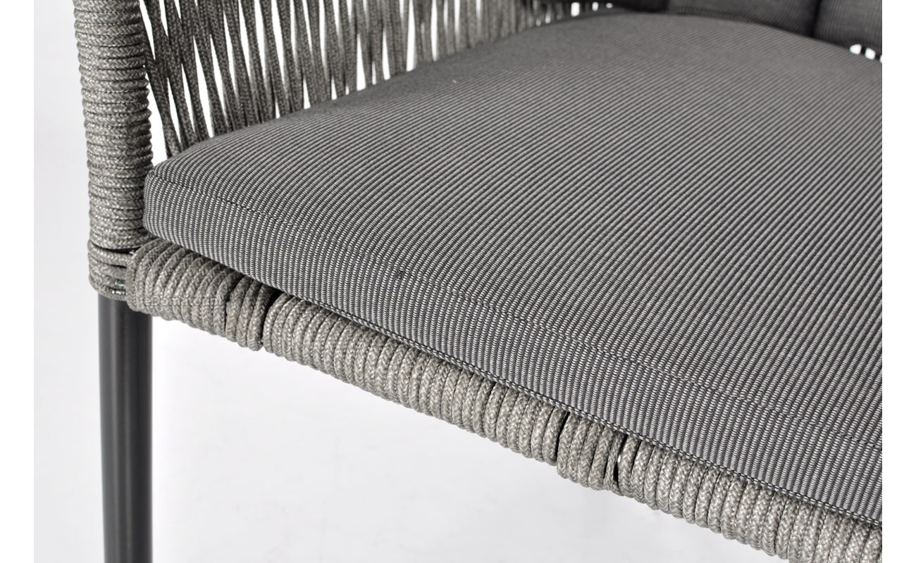 Materiał wykonania: krzesła: splot linowy, konstrukcja stalowa, stół: aluminium