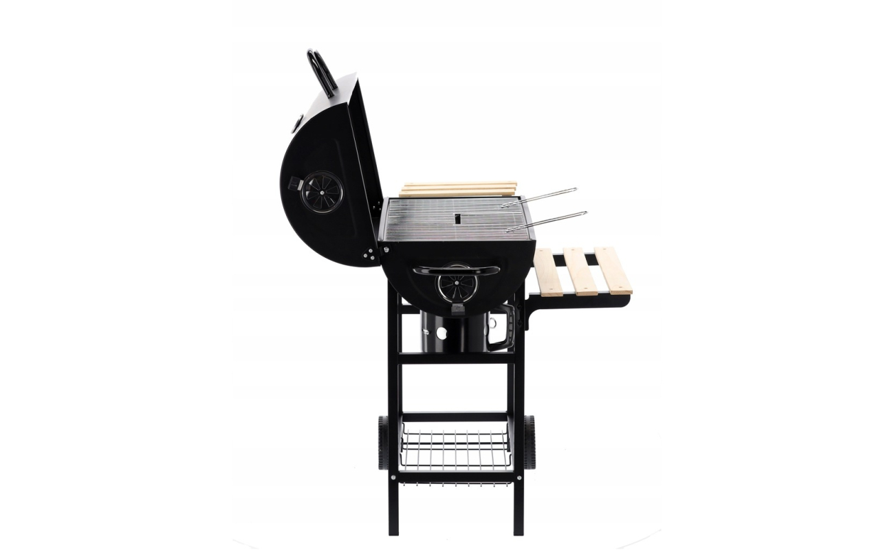 Dzięki drewnianym półkom, pokrywie z termometrem i mobilnej konstrukcji grillowanie staje się prostsze i przyjemniejsze.