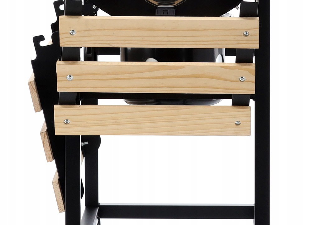 Półki boczne: 2 drewniane półki + półka dolna na opał