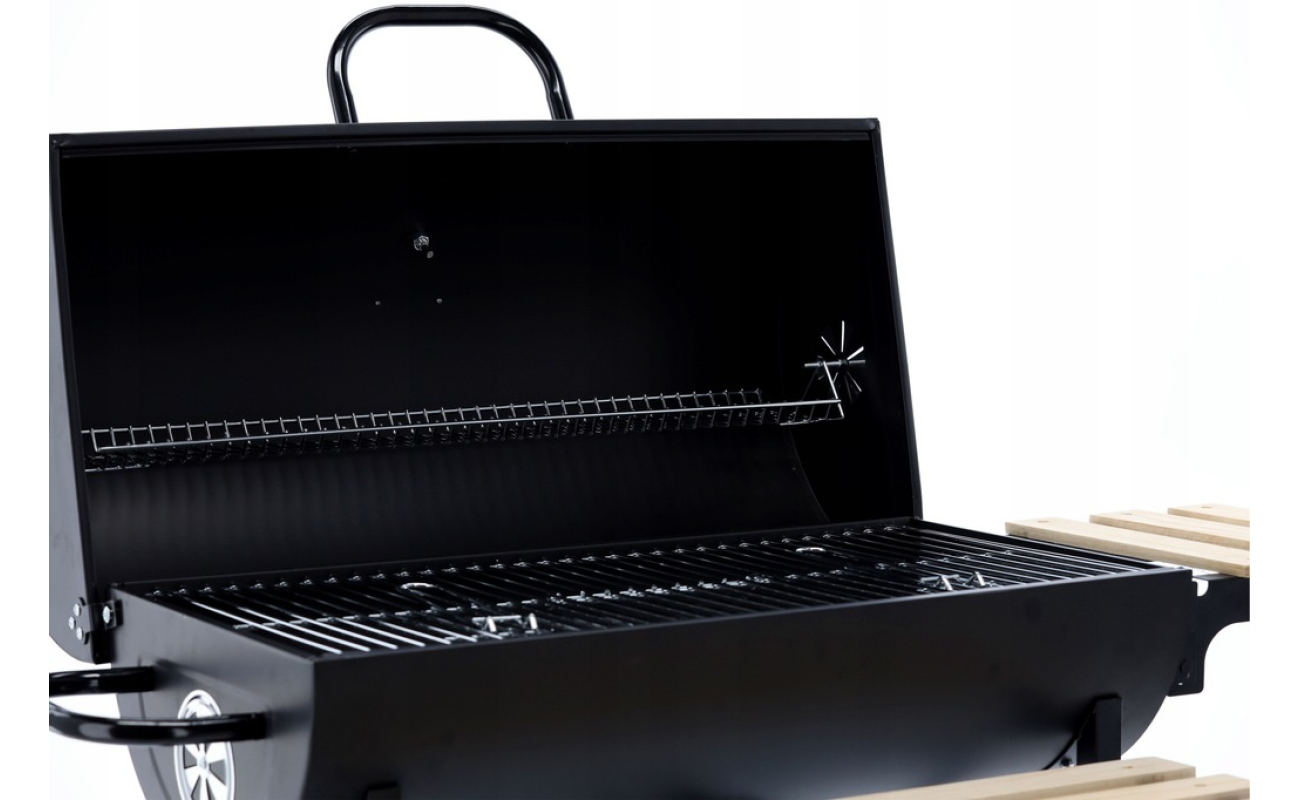 Grill Węglowy Beczka Z Pokrywą wyposażono w chromowany ruszt główny o wymiarach 70 × 35 cm.