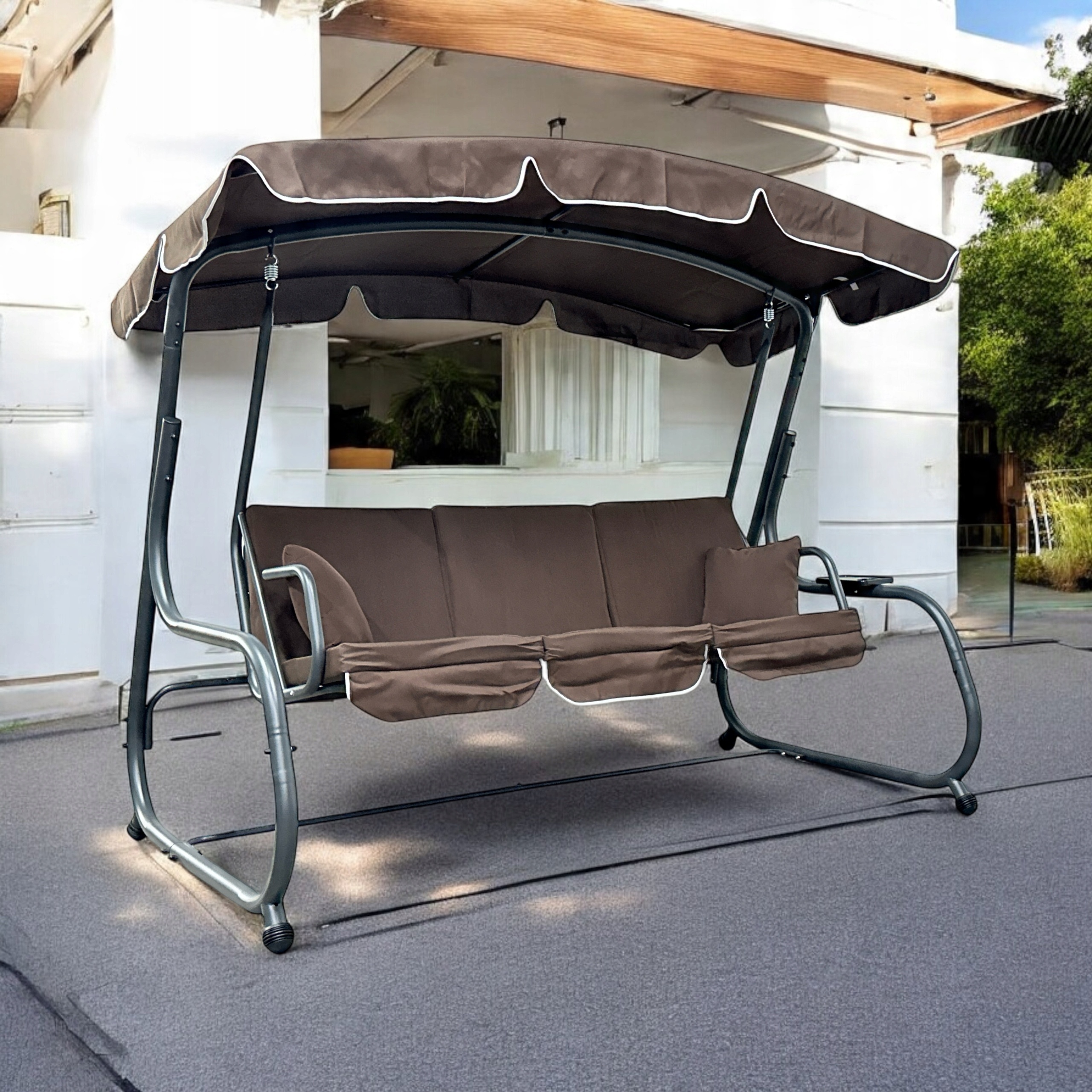 Huśtawka ogrodowa brązowa wolnostojąca z funkcją leżanki COMO