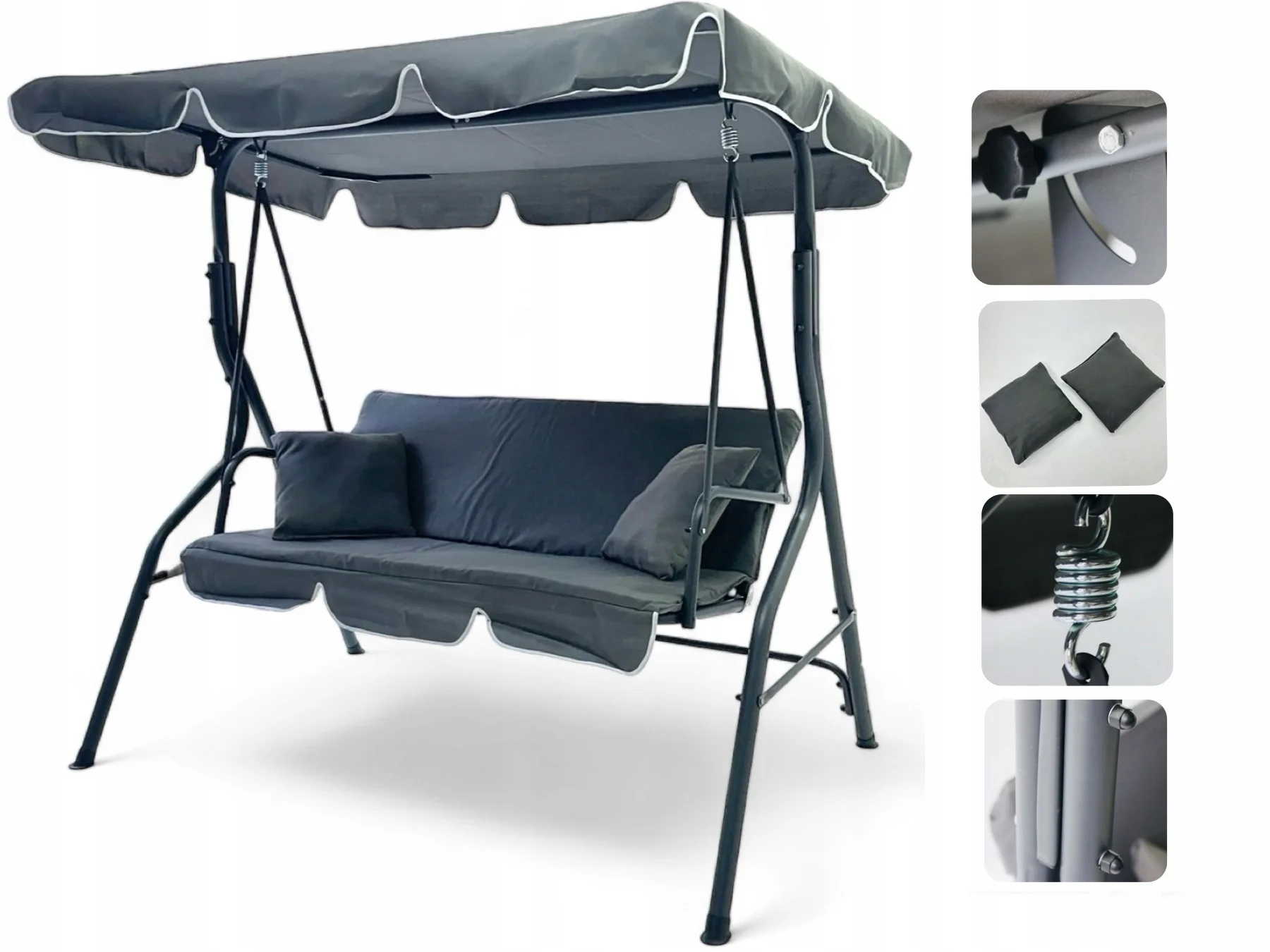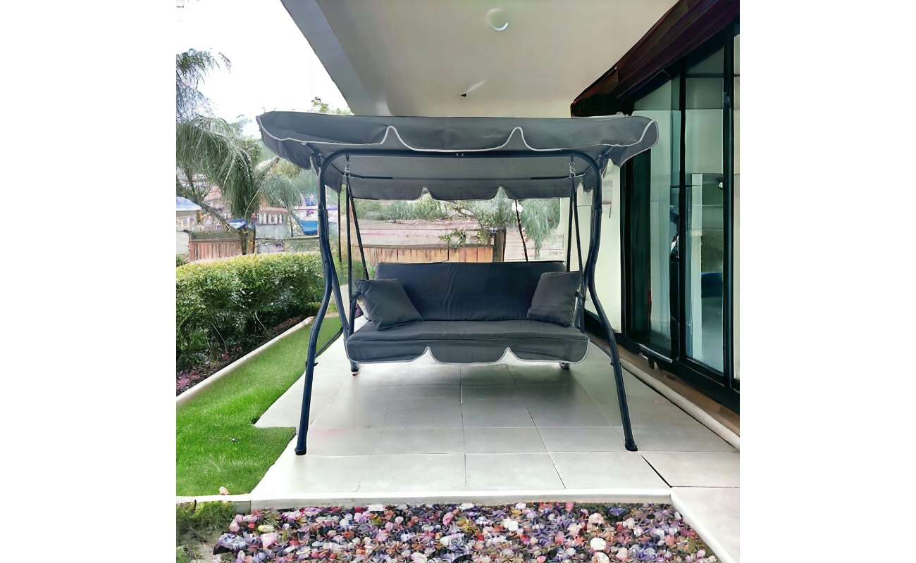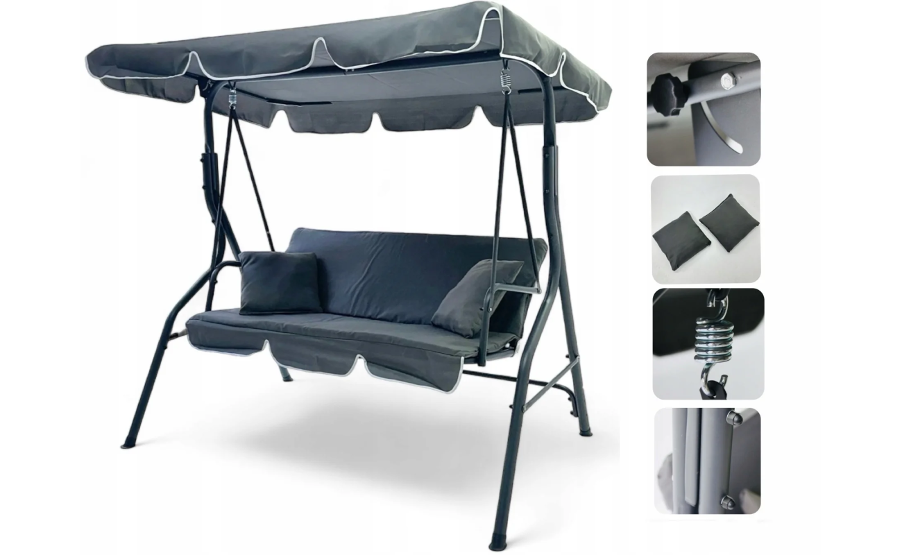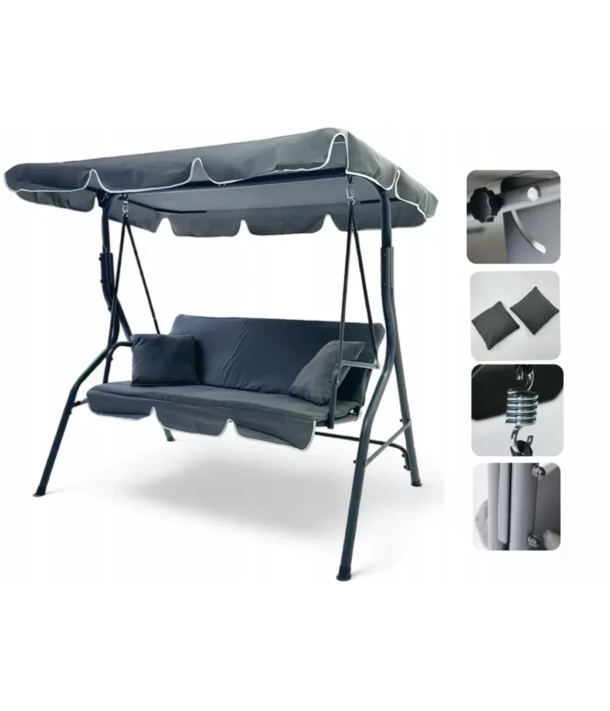 Huśtawka ogrodowa z daszkiem wolnostojąca bujana szara
