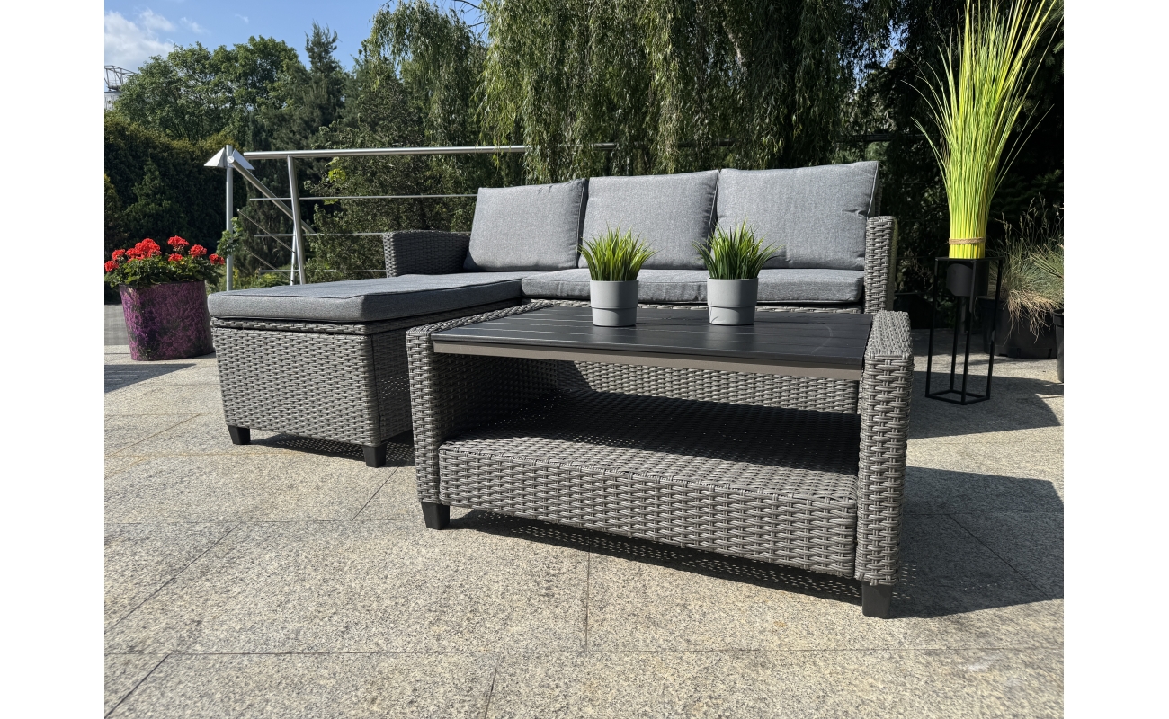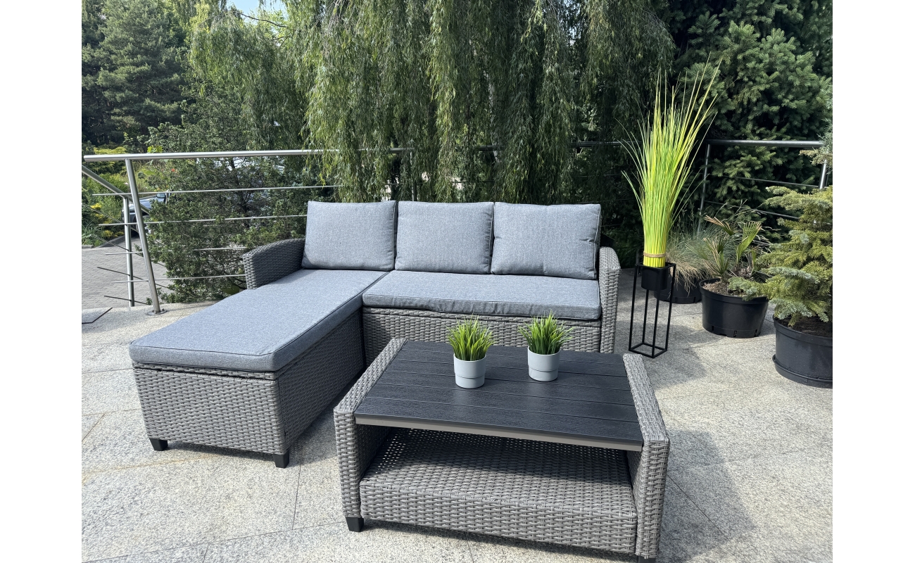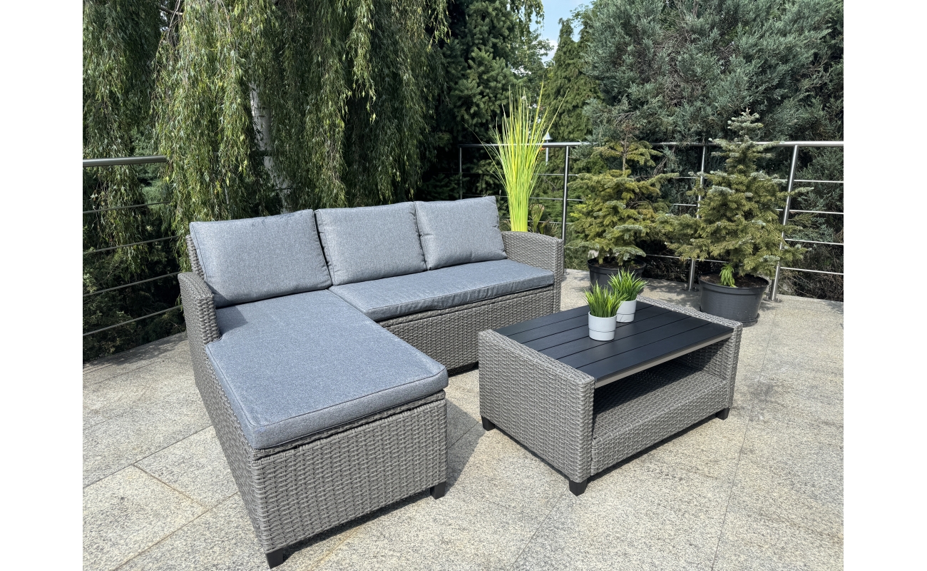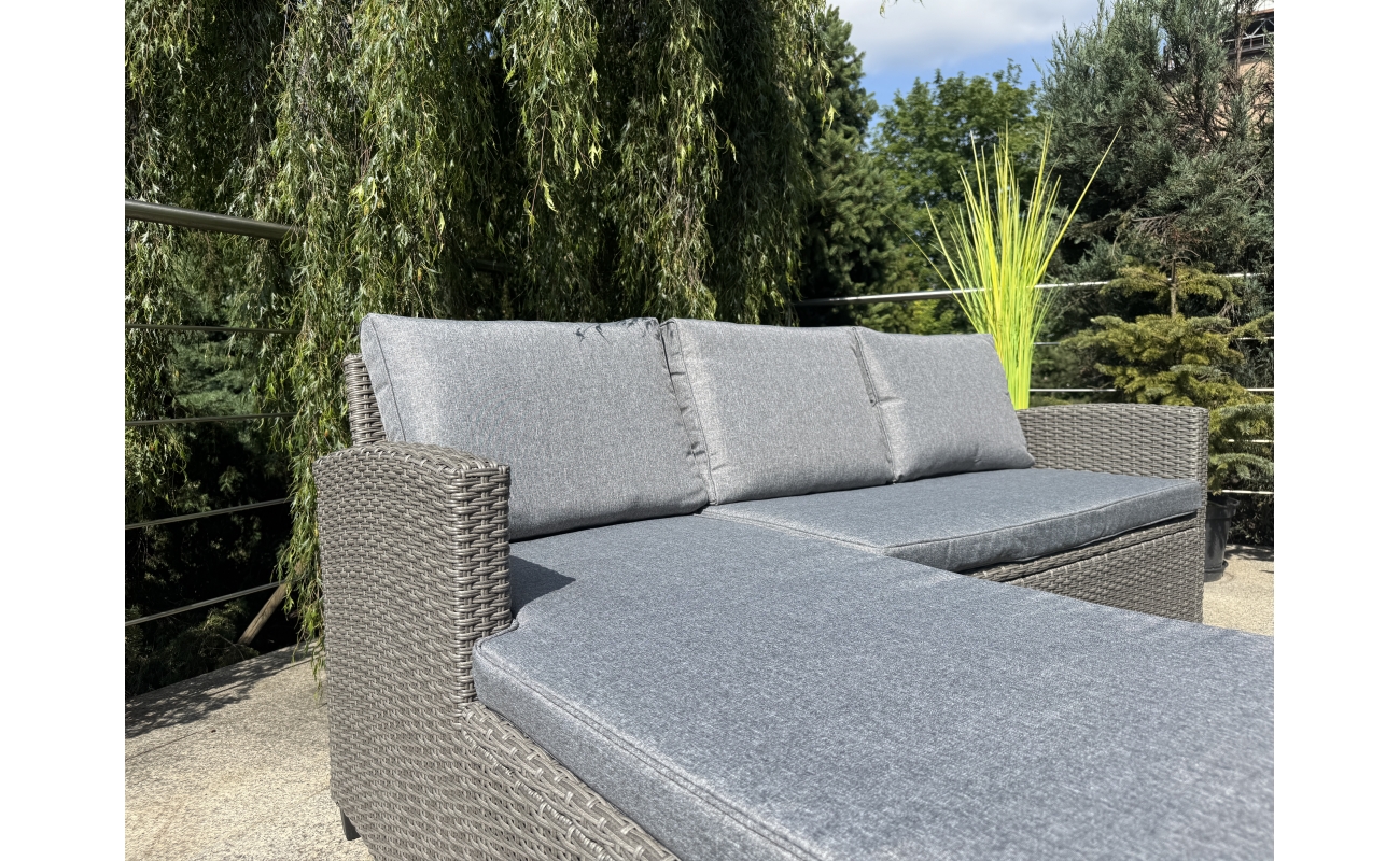 Kompaktowy ogrodowy narożnik technorattanowy  TARANTO – szary zestaw mebli ogrodowych