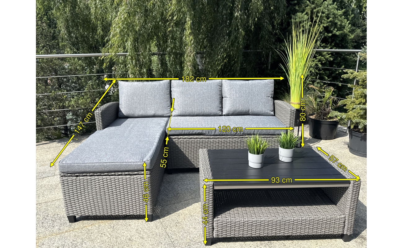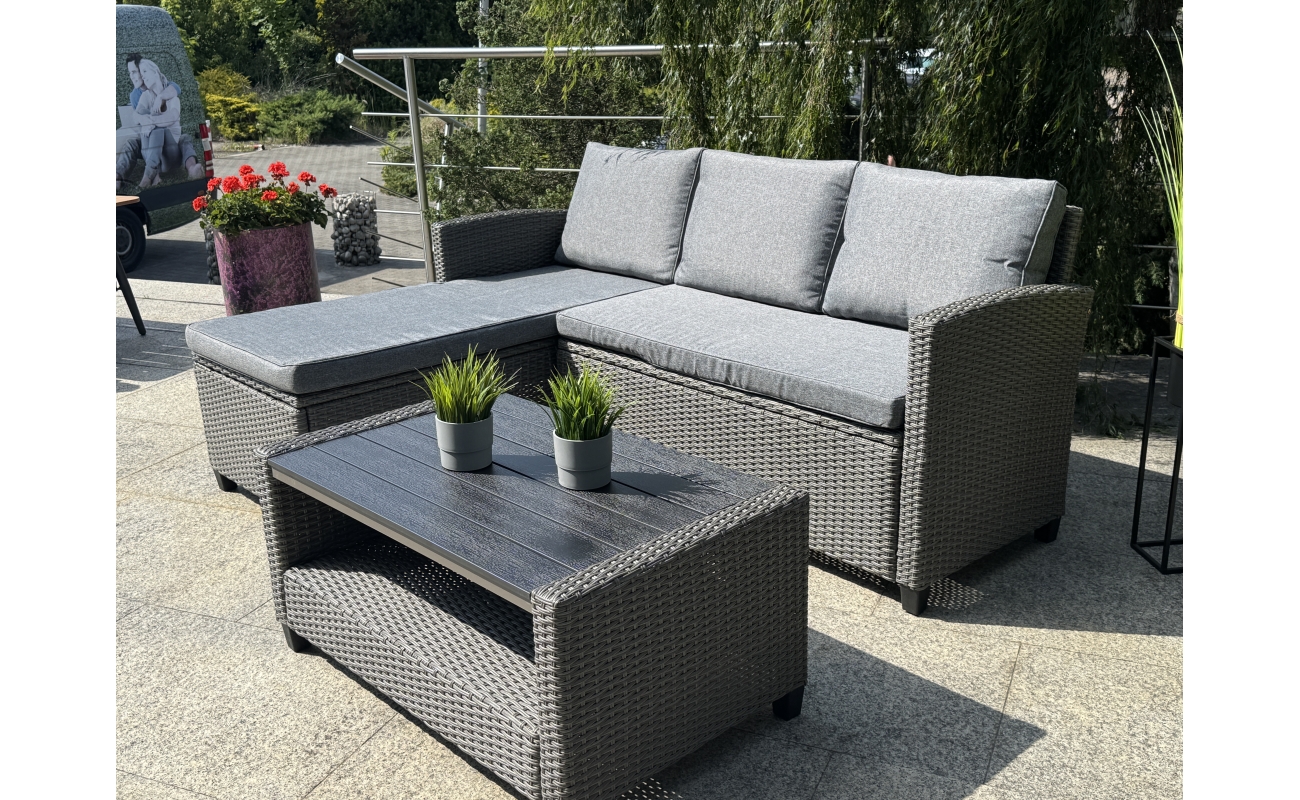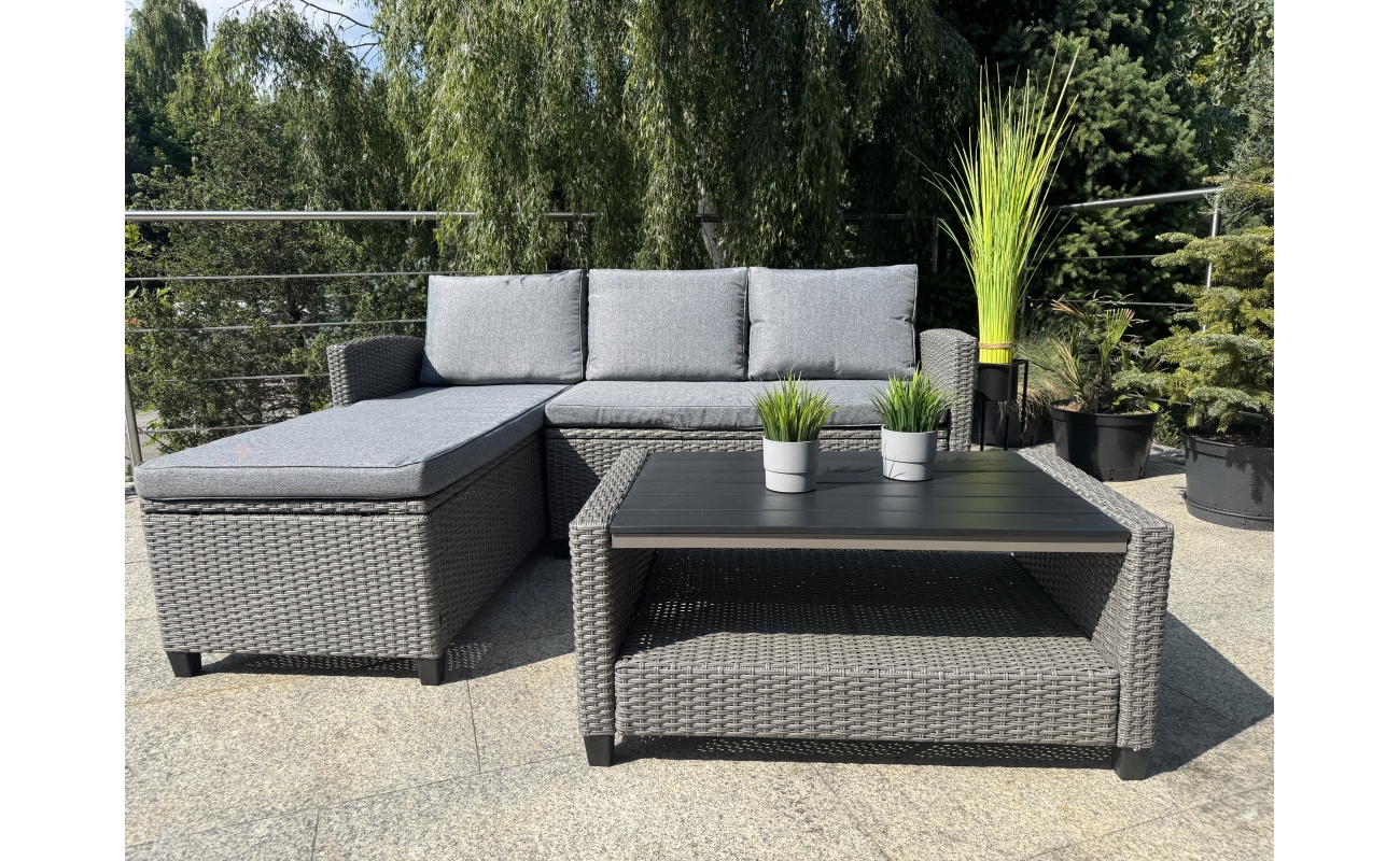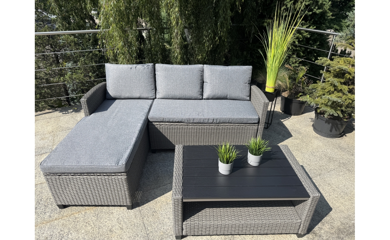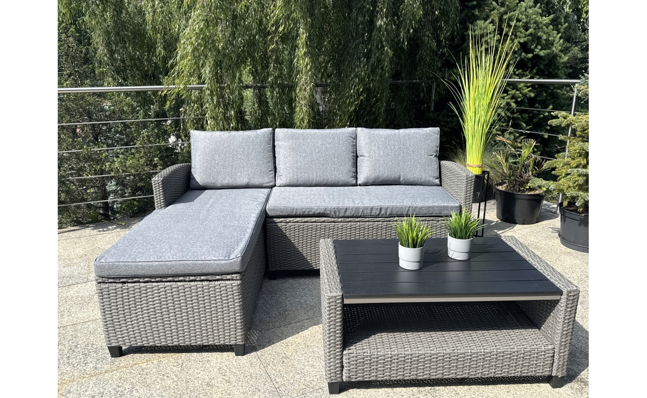 Kompaktowy ogrodowy narożnik technorattanowy  TARANTO – szary zestaw mebli ogrodowych