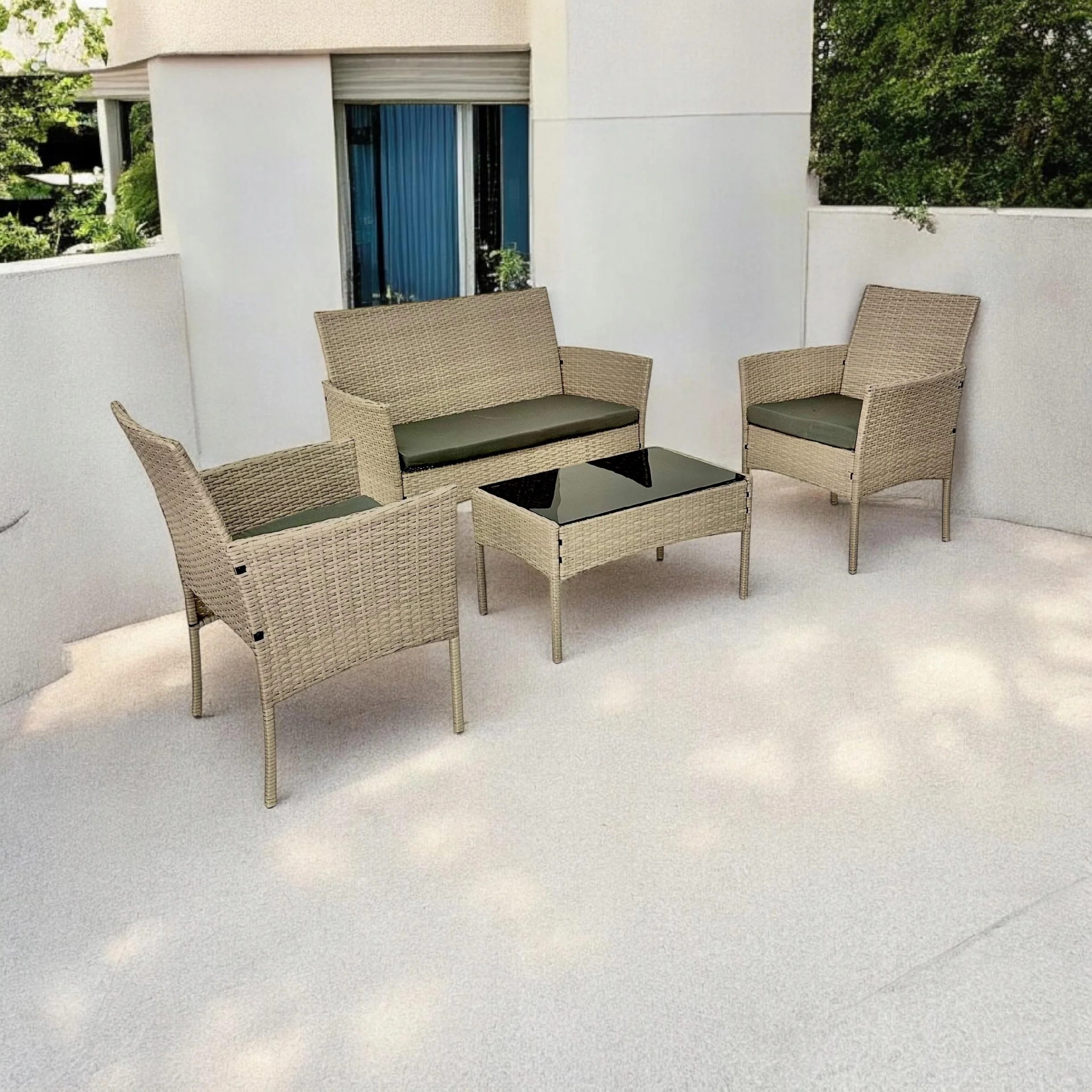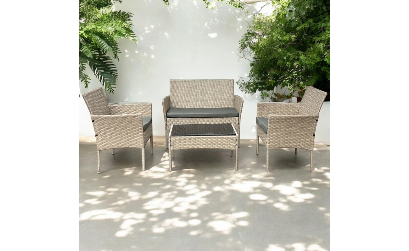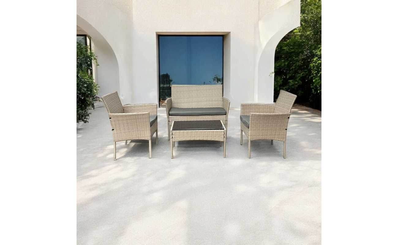 Kompaktowy zestaw tarasowy technorattanowy kolor naturalny Natal