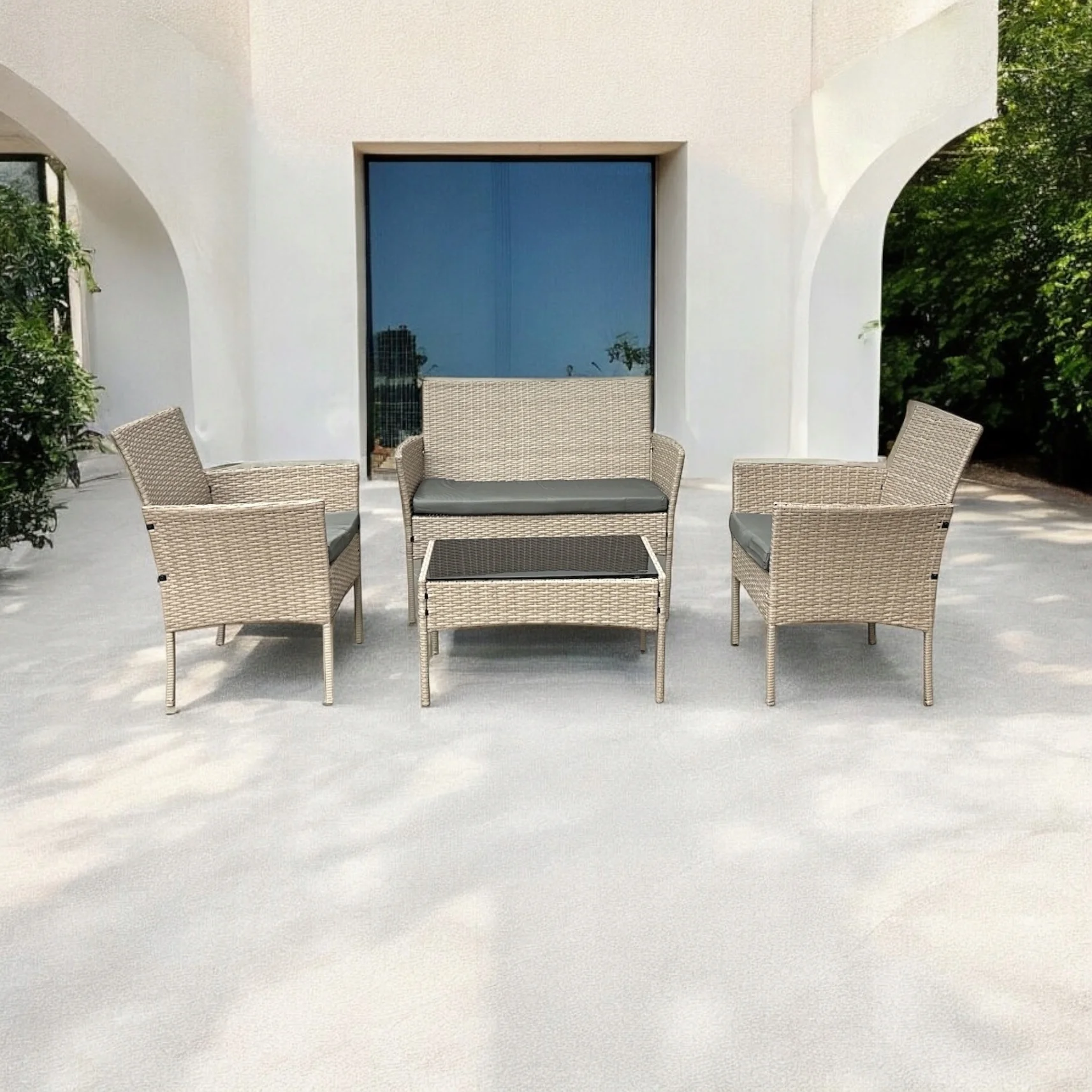 Z jednej strony zestaw wyróżnia się nowoczesnym wyglądem, z drugiej natomiast oferuje solidność i odporność na pogodę. Co więcej, nie wymaga specjalnej pielęgnacji. Wystarczy mokra szmatka i odrobina środka czyszczącego.