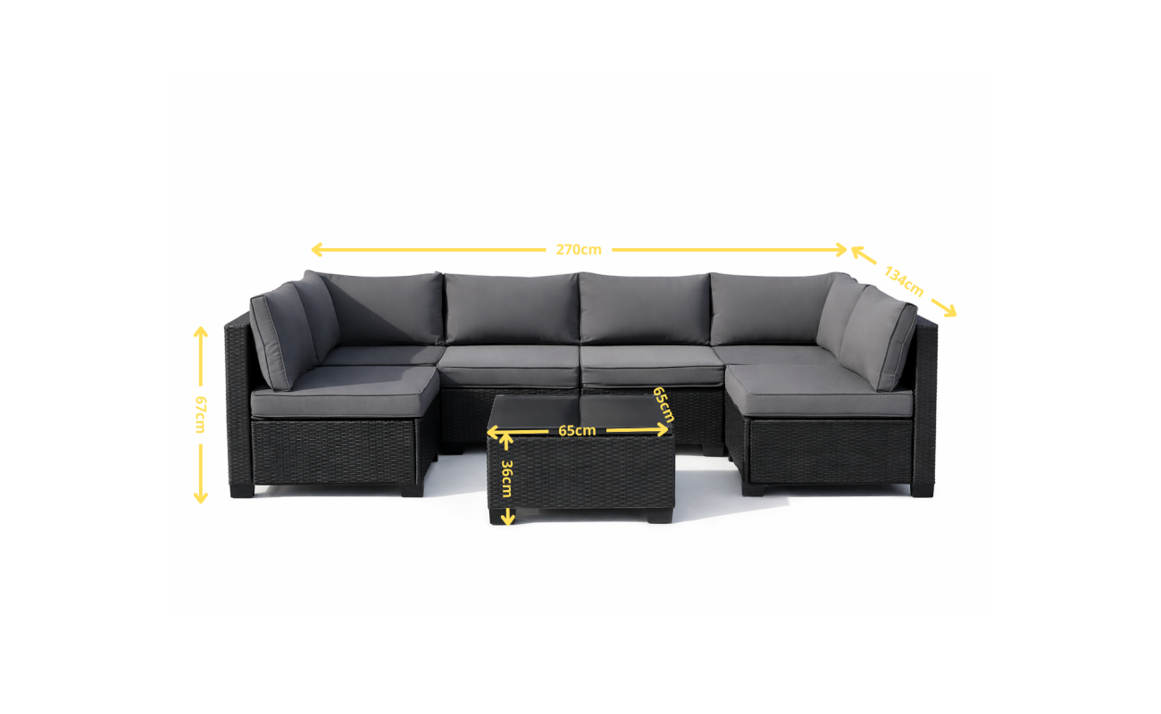 Wymiar narożnika: długość: 270cm, szerokość: 134cm, wysokość: 67 cm