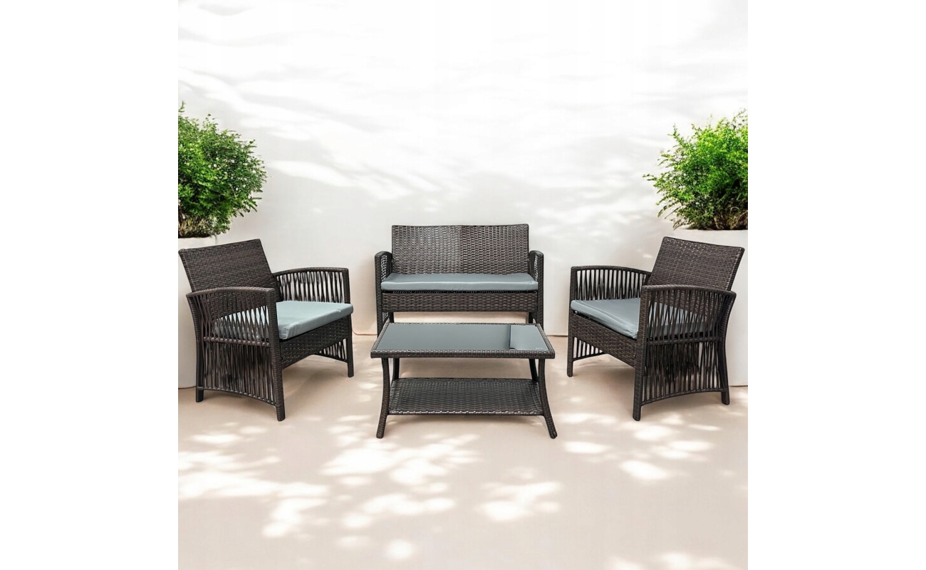 Mały brązowy zestaw technorattanowy stworzony z myślą o tych, którzy cenią wygodę, trwałość i styl.
