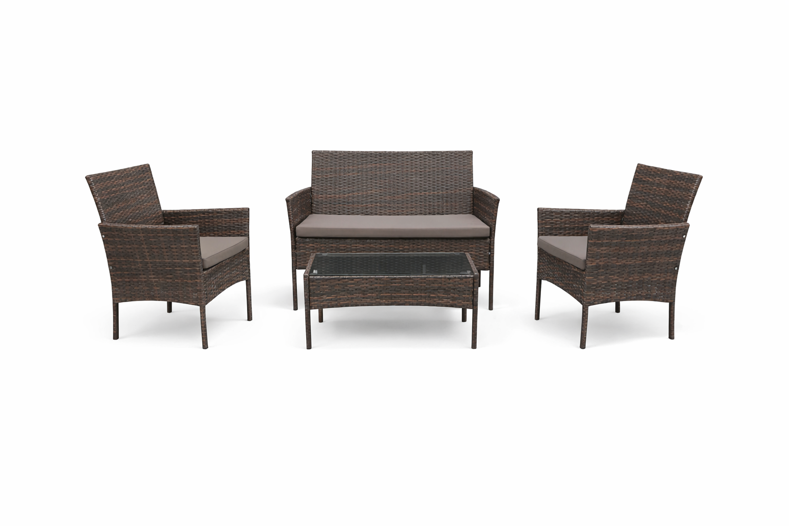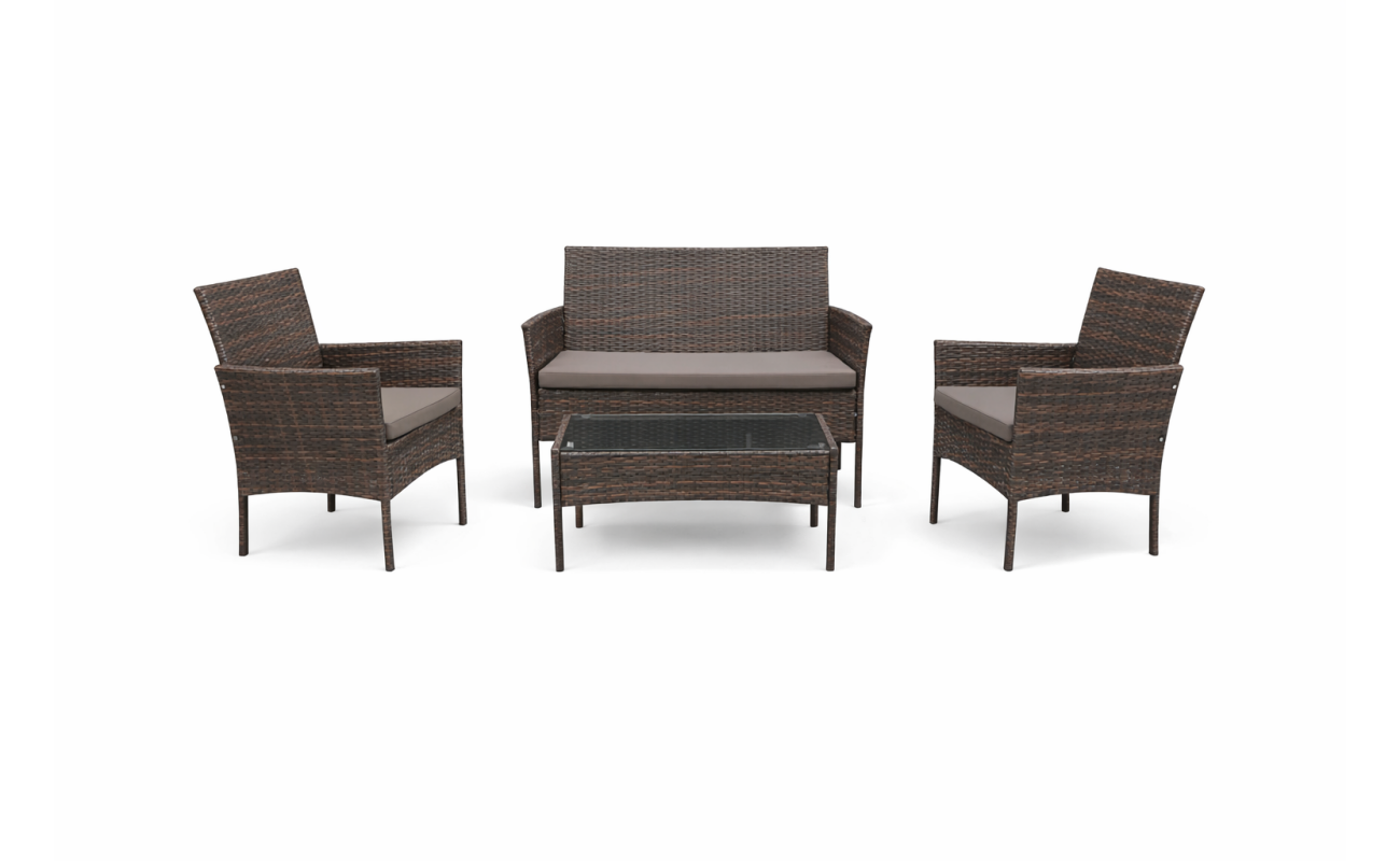 Stelaż wykonany jest ze stali malowanej proszkowo, a całość została pokryta trwałym technorattanem, który wygląda stylowo i jest łatwy w pielęgnacji.