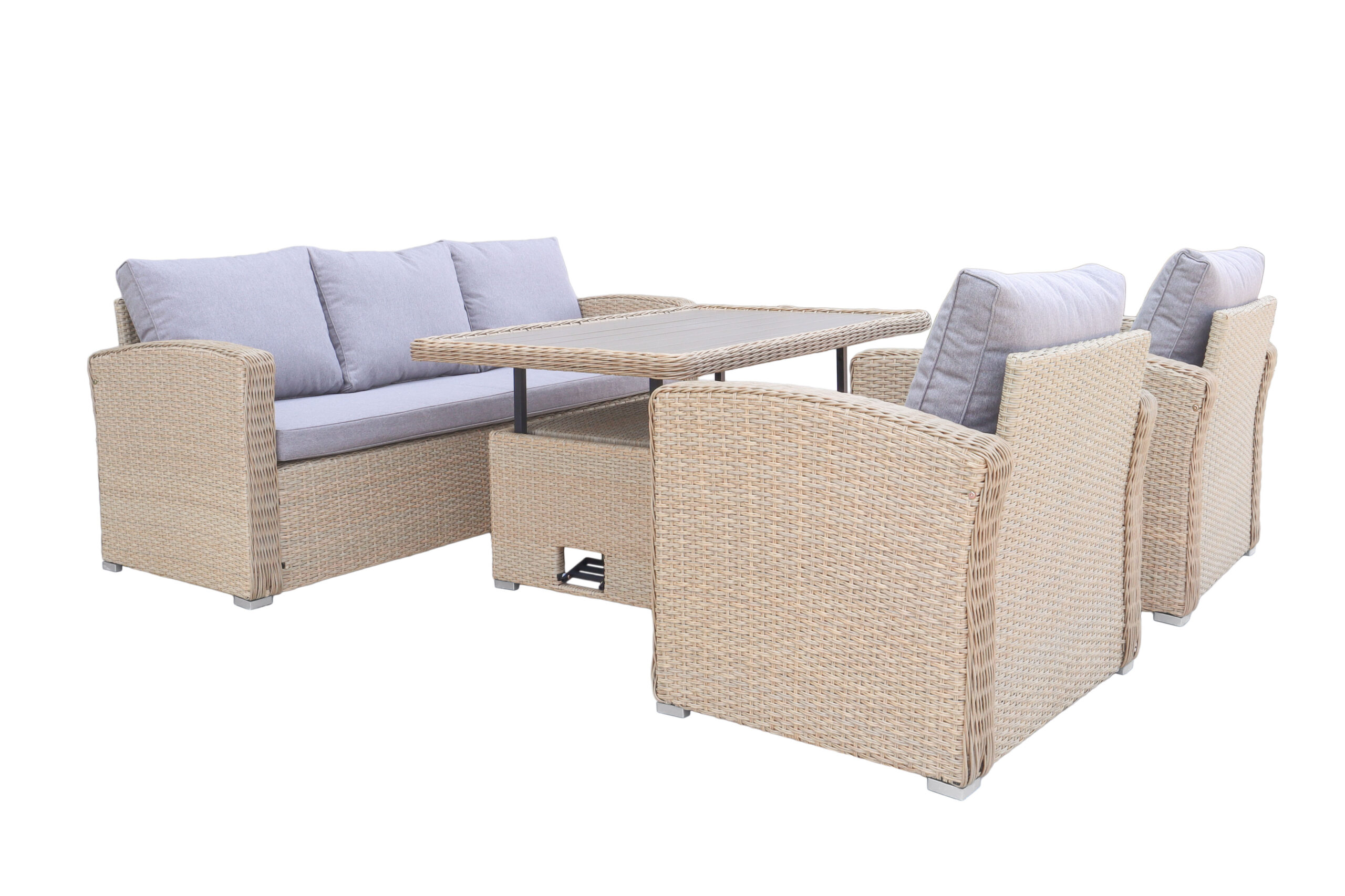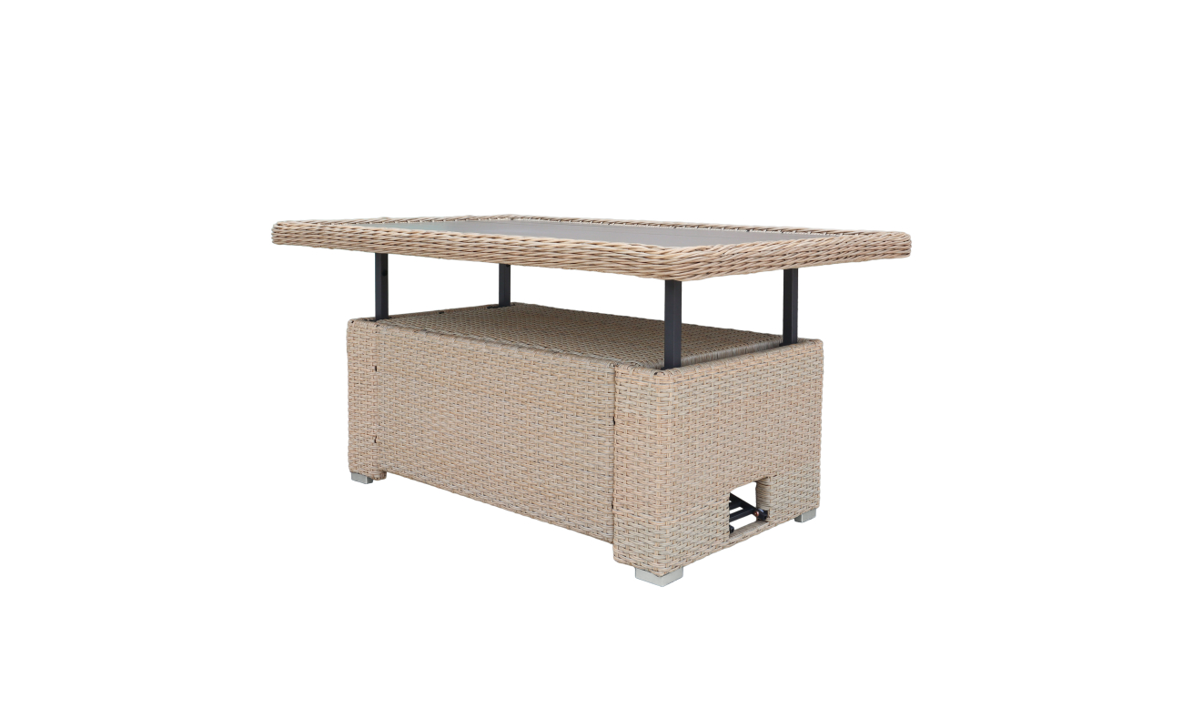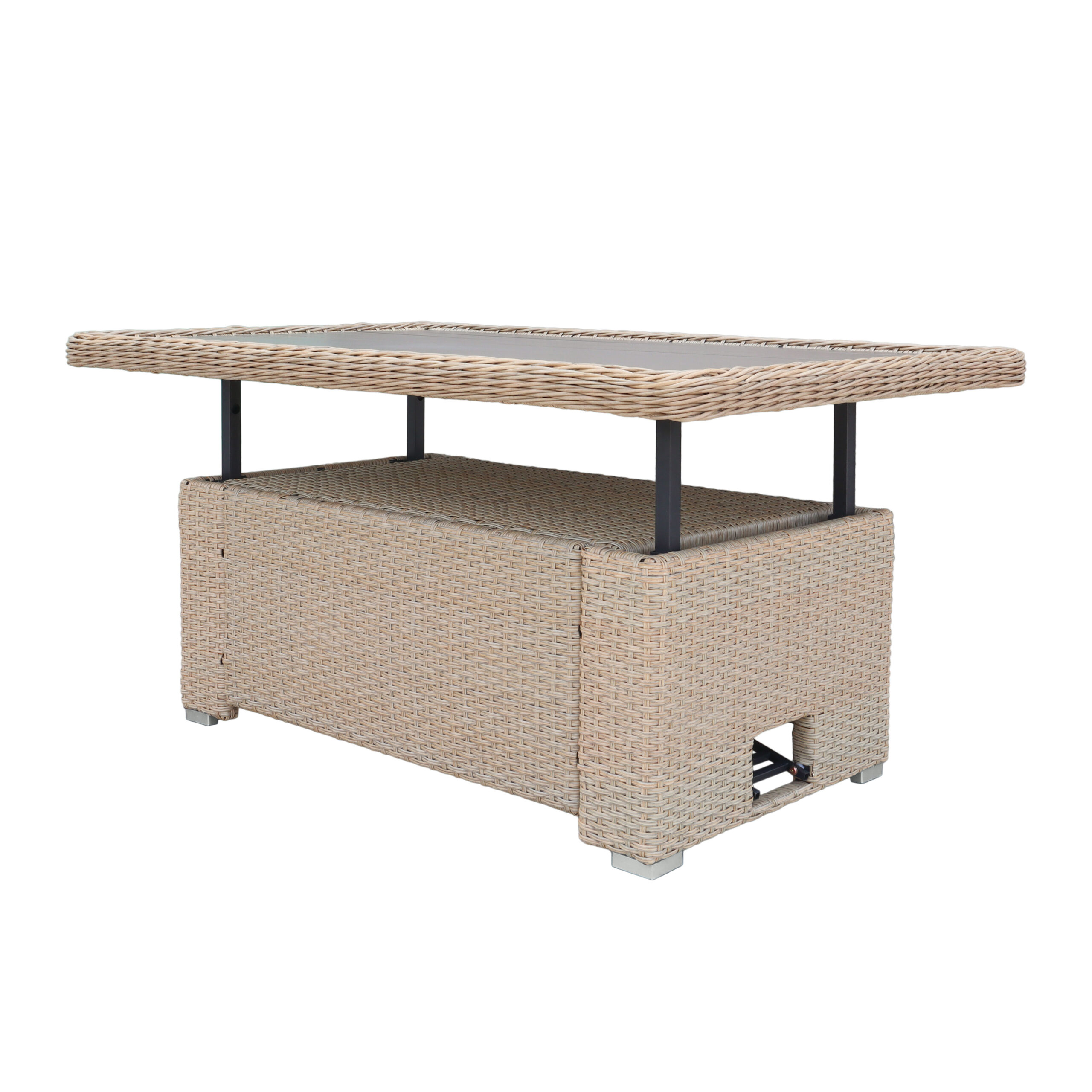 Meble z regulowanym stołem ogrodowe technorattan beż Barletta