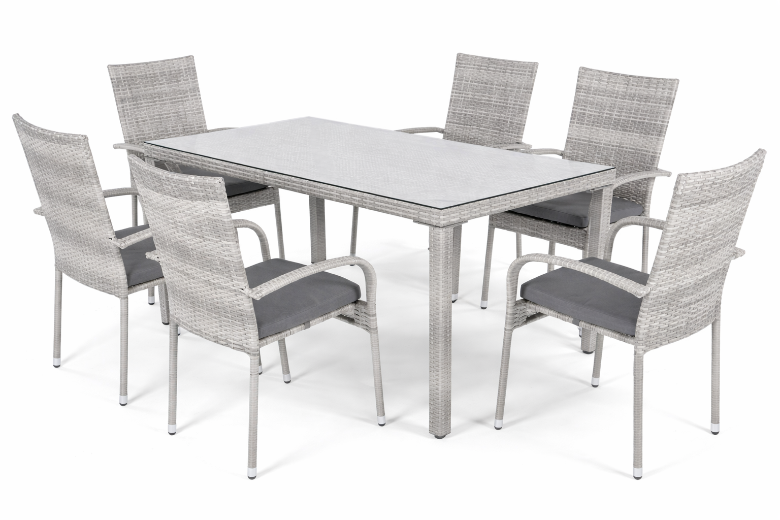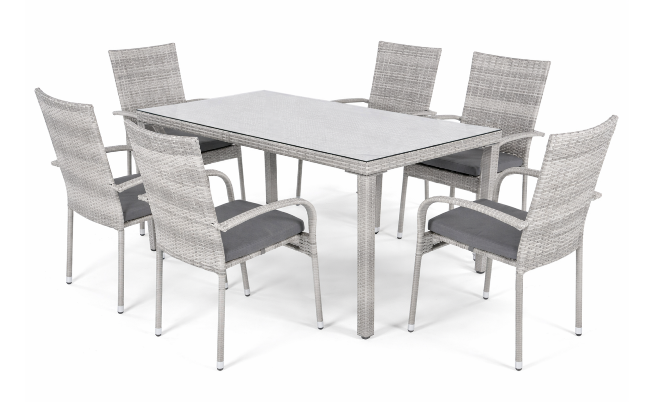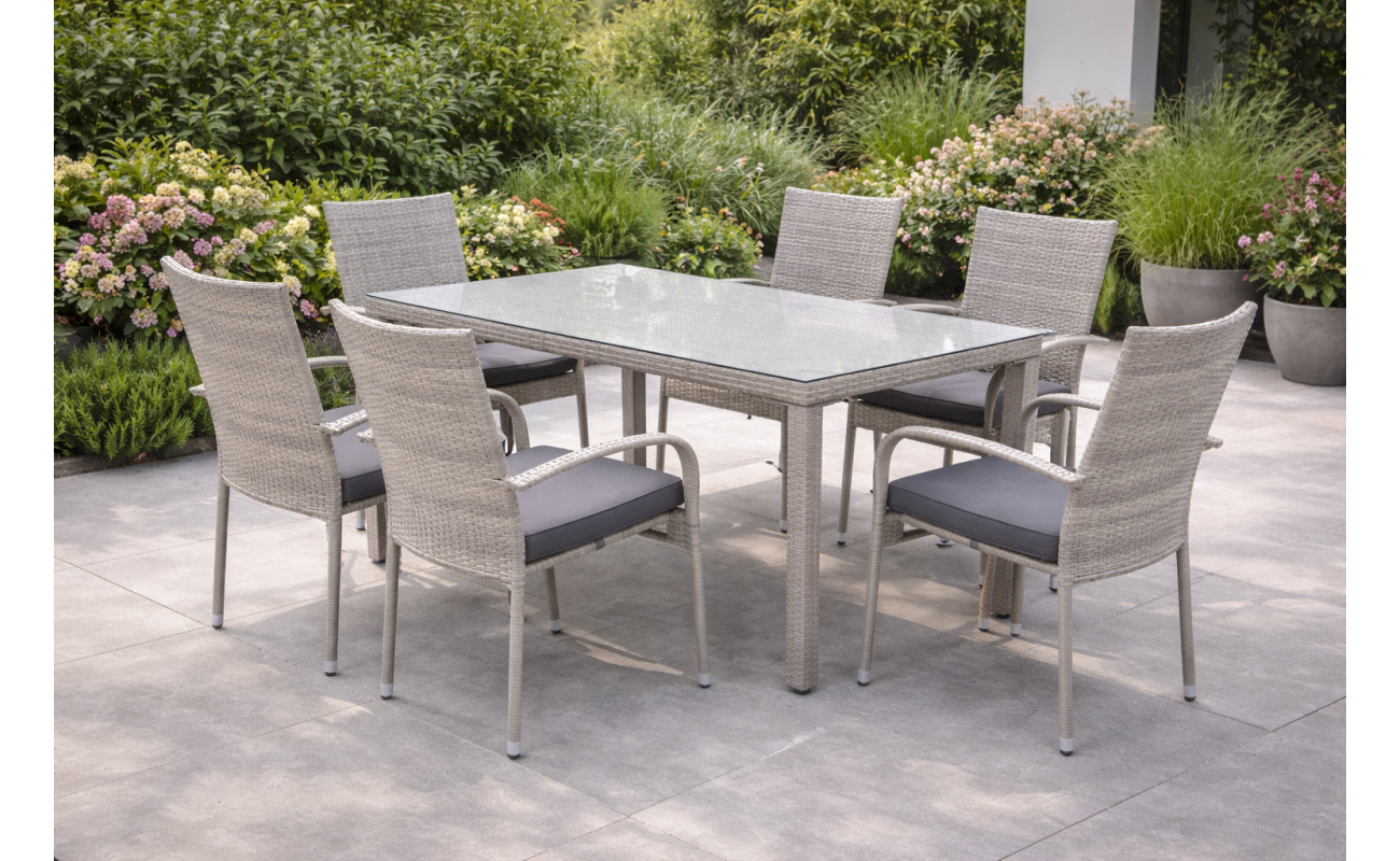 Meble z technorattanu jadalniane Malaga 6-osobowe Szare