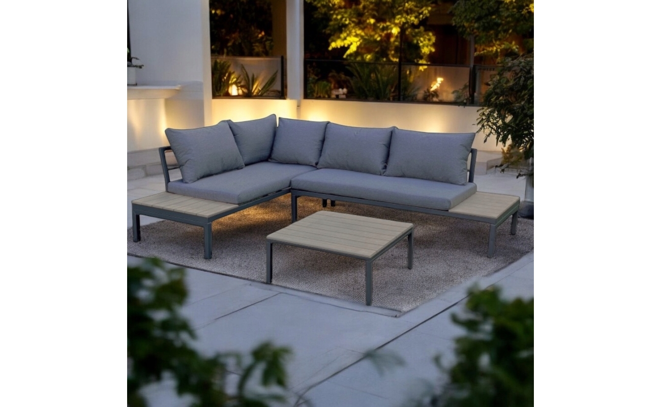 Szukasz mebla, który stworzy wygodne miejsce do relaksu? Narożnik na taras szary Valencia to idealne rozwiązanie, ponieważ łączy nowoczesny wygląd, praktyczną funkcjonalność i wysoką trwałość. Solidna stalowa konstrukcja oraz eleganckie deski polywood w szarym odcieniu tworzą zestaw, który świetnie wygląda w każdej nowoczesnej przestrzeni. Całość prezentuje się lekko, a jednocześnie bardzo stylowo.