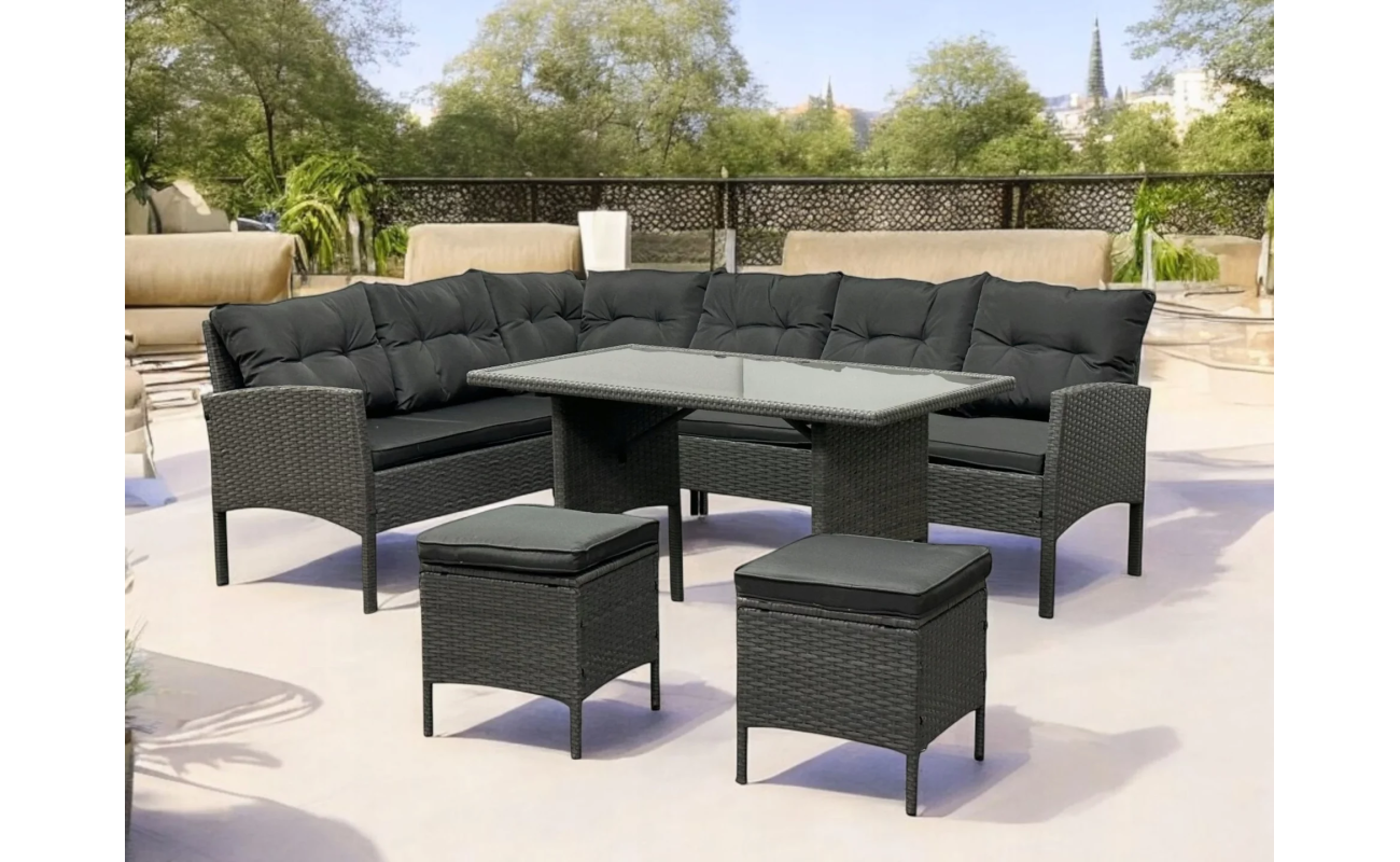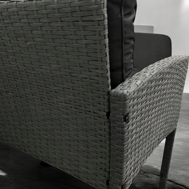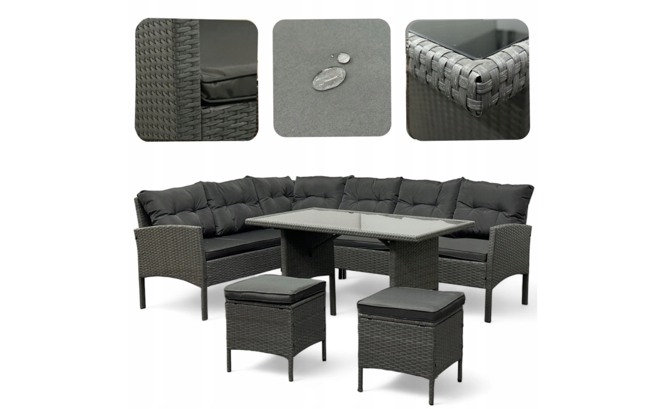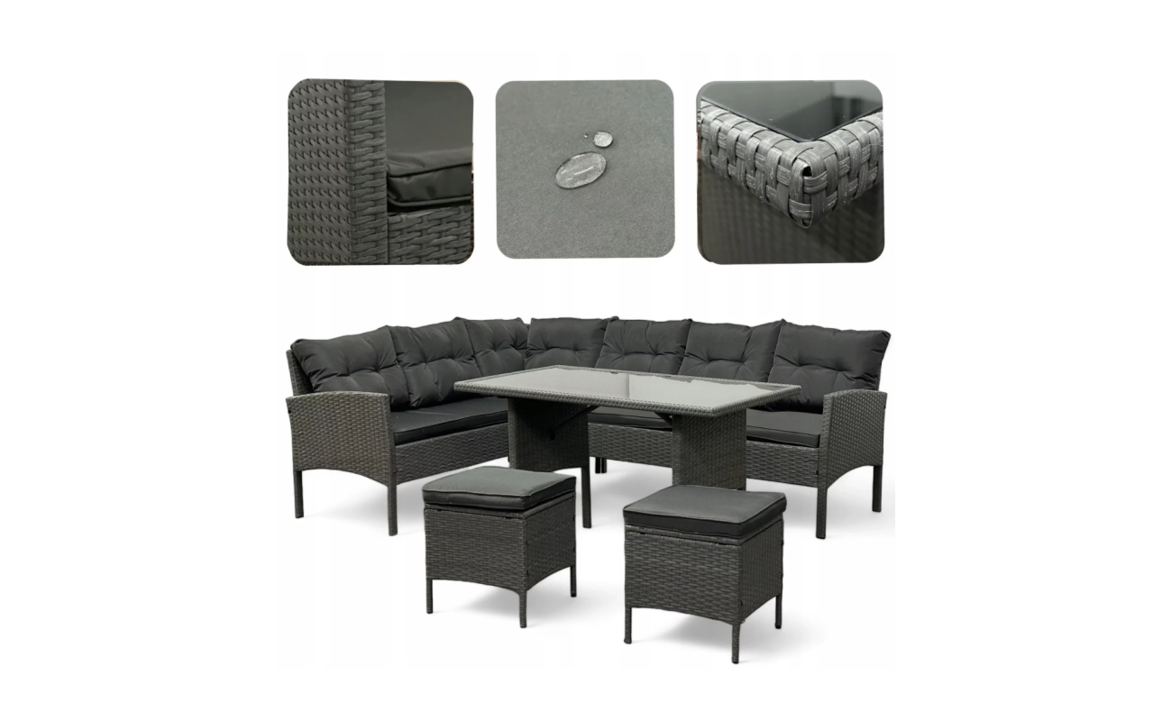 Technorattan to materiał wyjątkowo odporny na działanie promieni UV, wilgoci czy zmiennych temperatur, dlatego meble zachowują estetyczny wygląd przez wiele sezonów. Co więcej, siedziska i oparcia wyposażone są w grube, miękkie poduszki, które zapewniają wysoki komfort użytkowania nawet podczas długich godzin spędzanych na świeżym powietrzu.