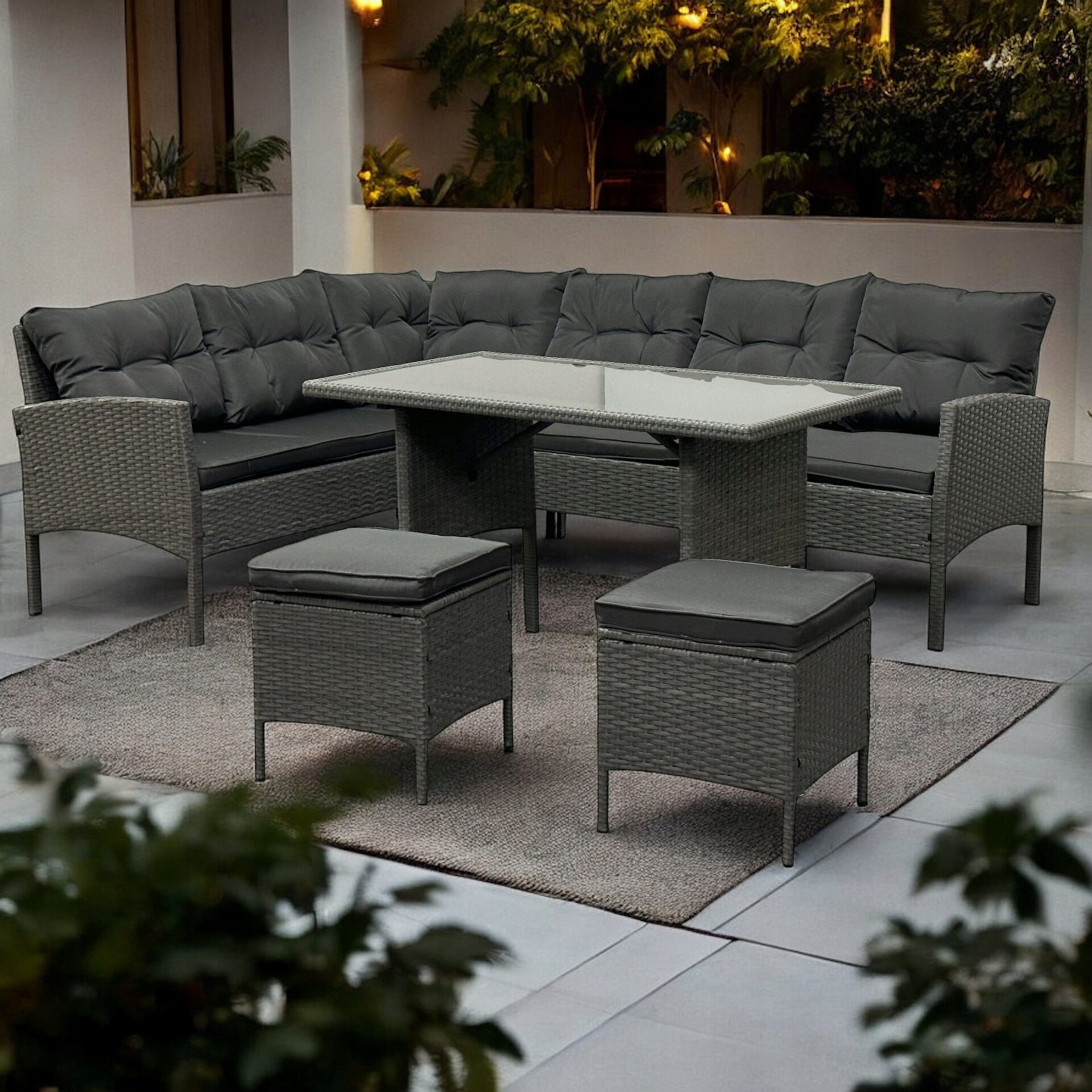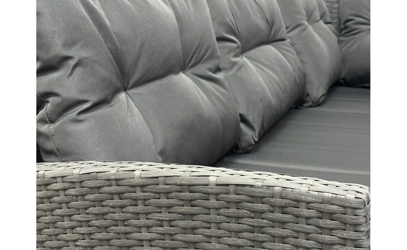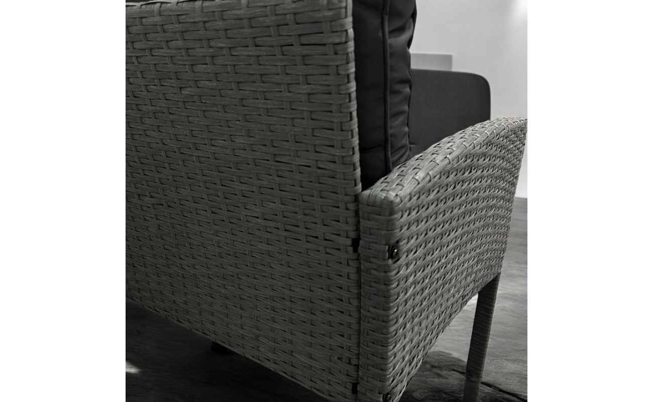 Wykonany z wysokogatunkowego technorattanu w odcieniu szarości, narożnik doskonale wpisuje się w aktualne trendy aranżacji zewnętrznych. Z jednej strony jego kolorystyka świetnie współgra z zielenią ogrodu i drewnianymi dodatkami, z drugiej – doskonale odnajduje się w nowoczesnych, minimalistycznych przestrzeniach.