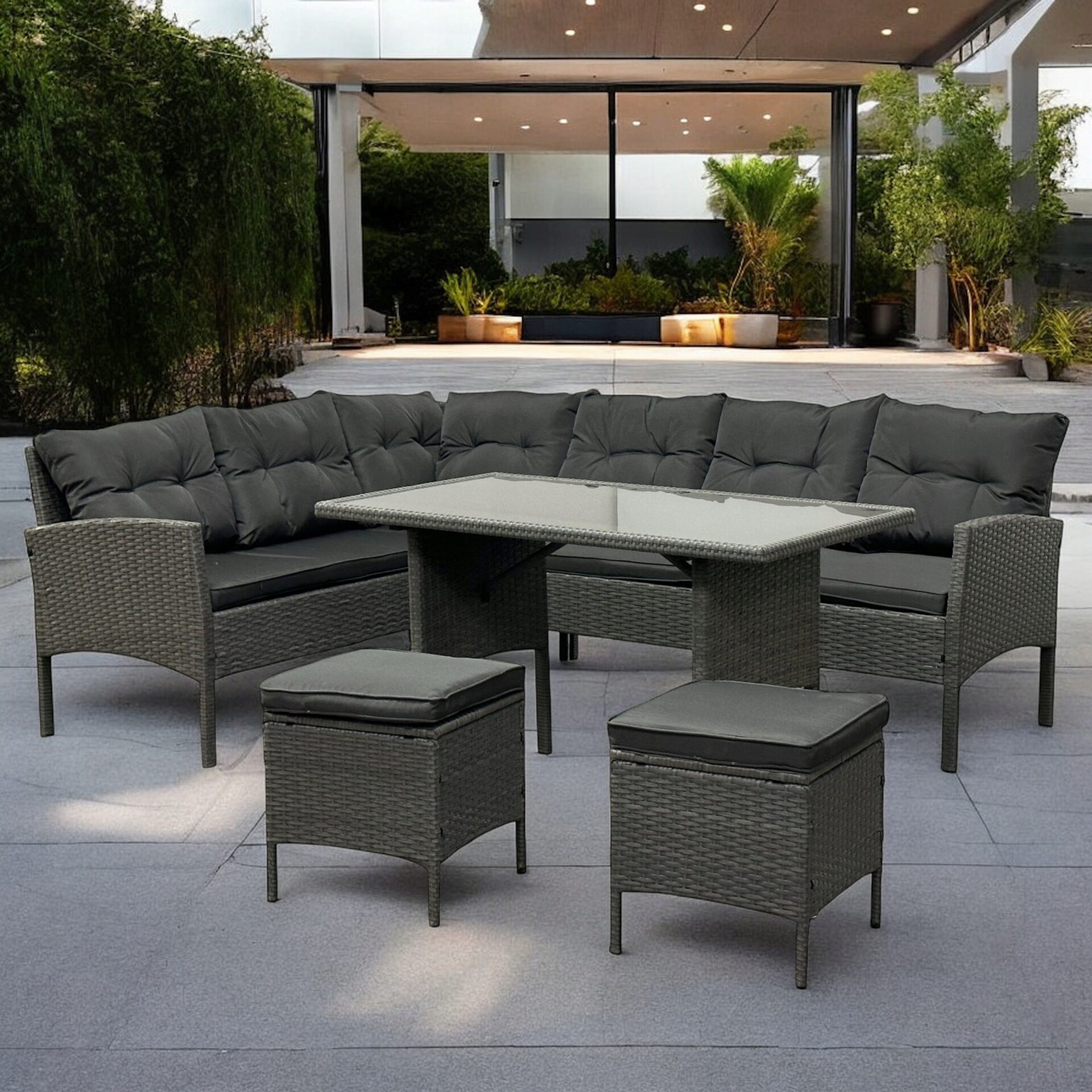 Szary narożnik na taras – nowoczesny styl i wysoka jakość