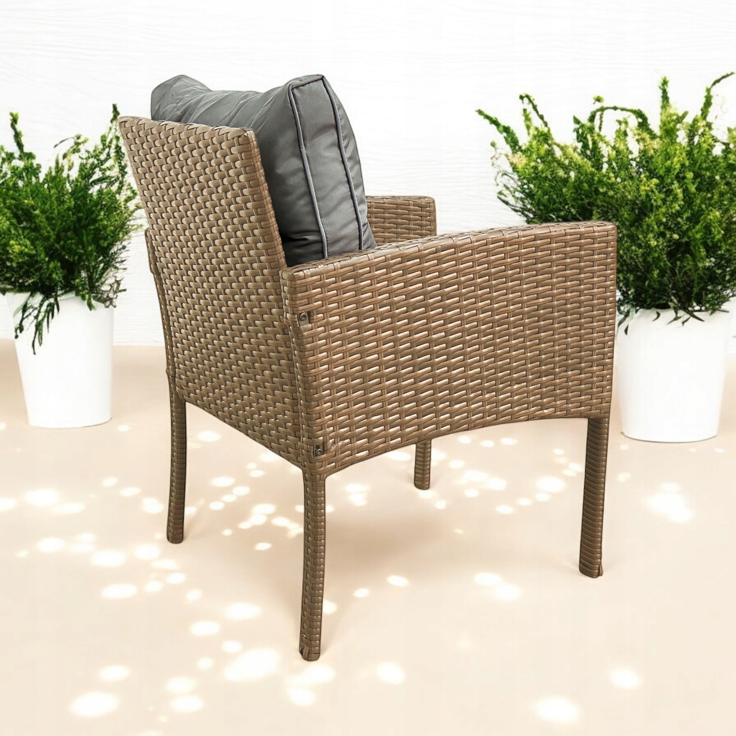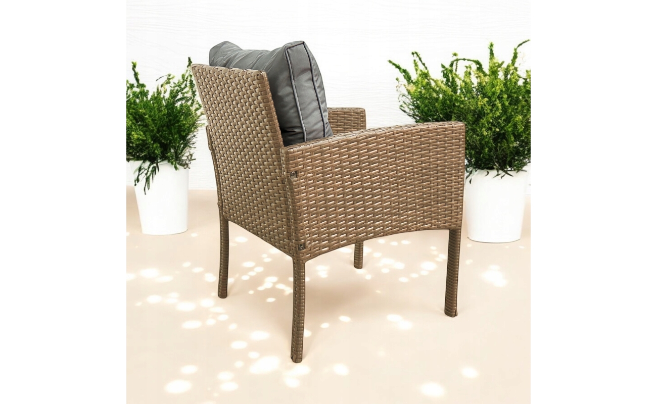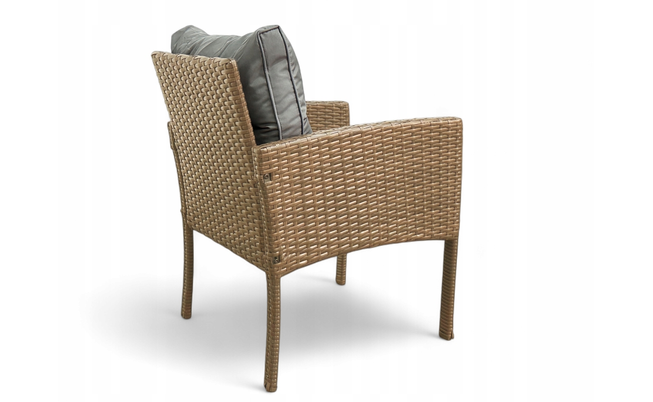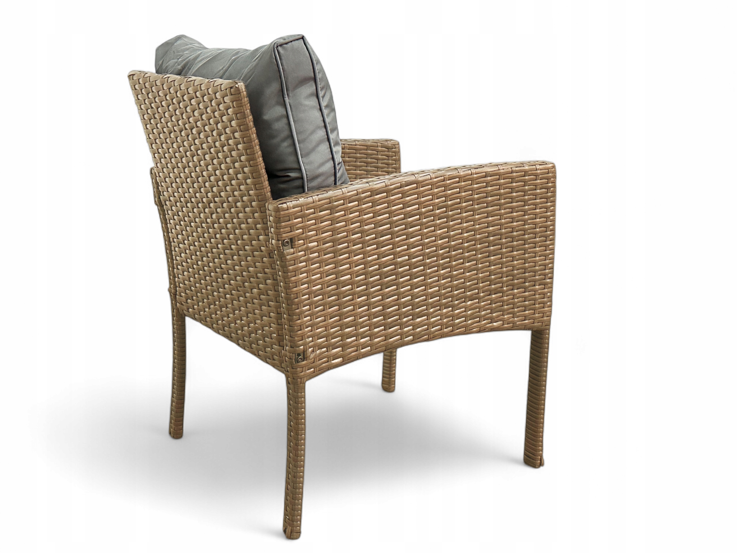 Naturalny fotel ogrodowy technorattanowy z szarymi poduszkami – styl i komfort w Twoim ogrodzie