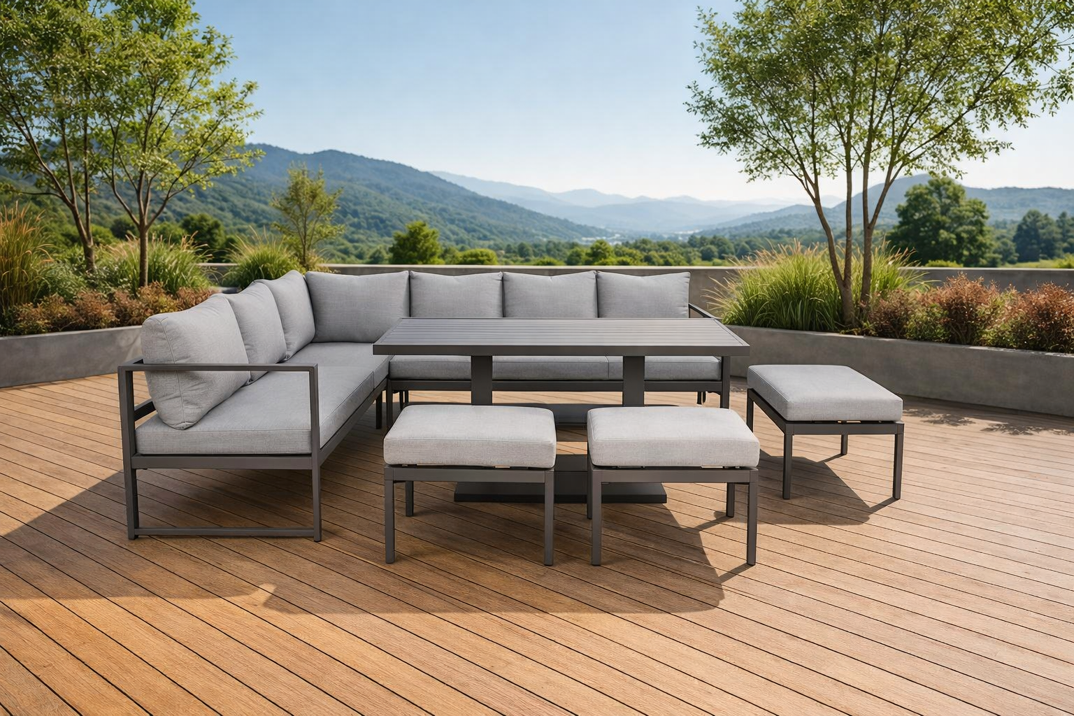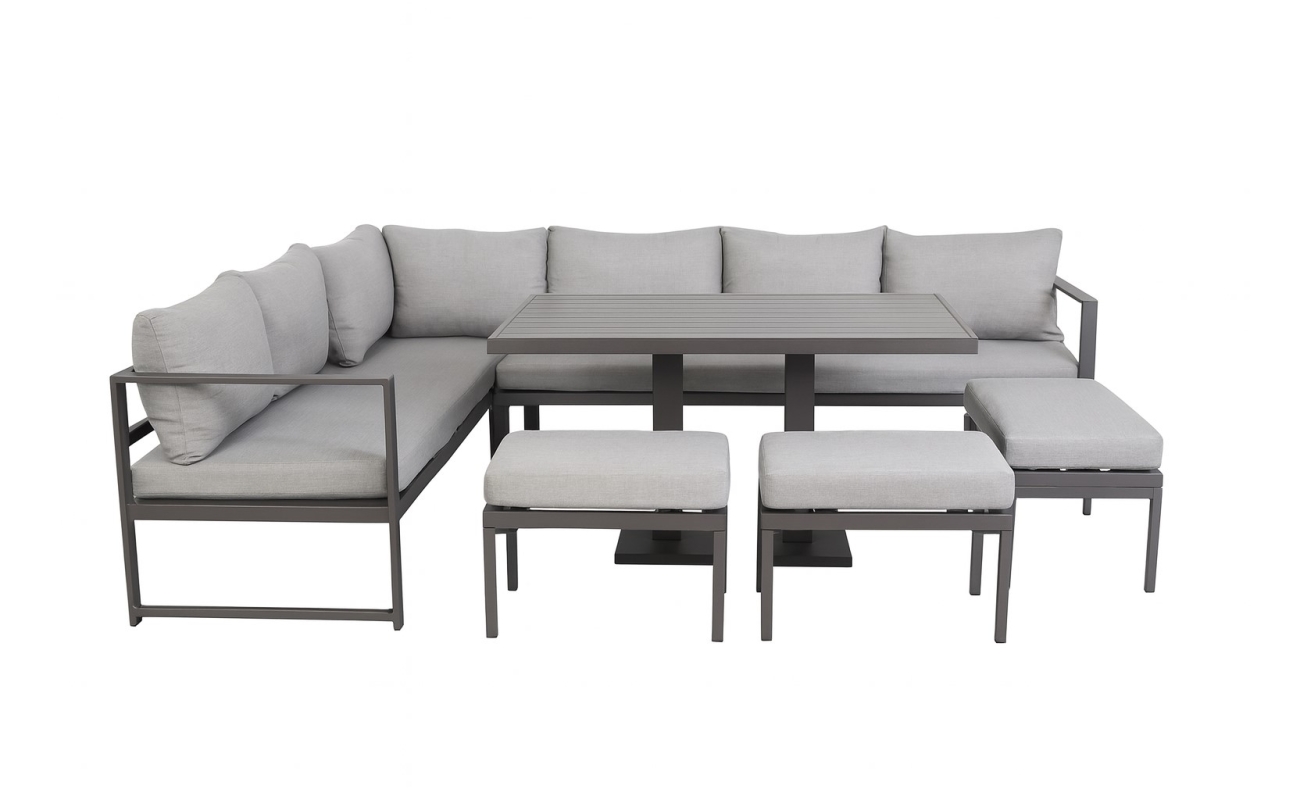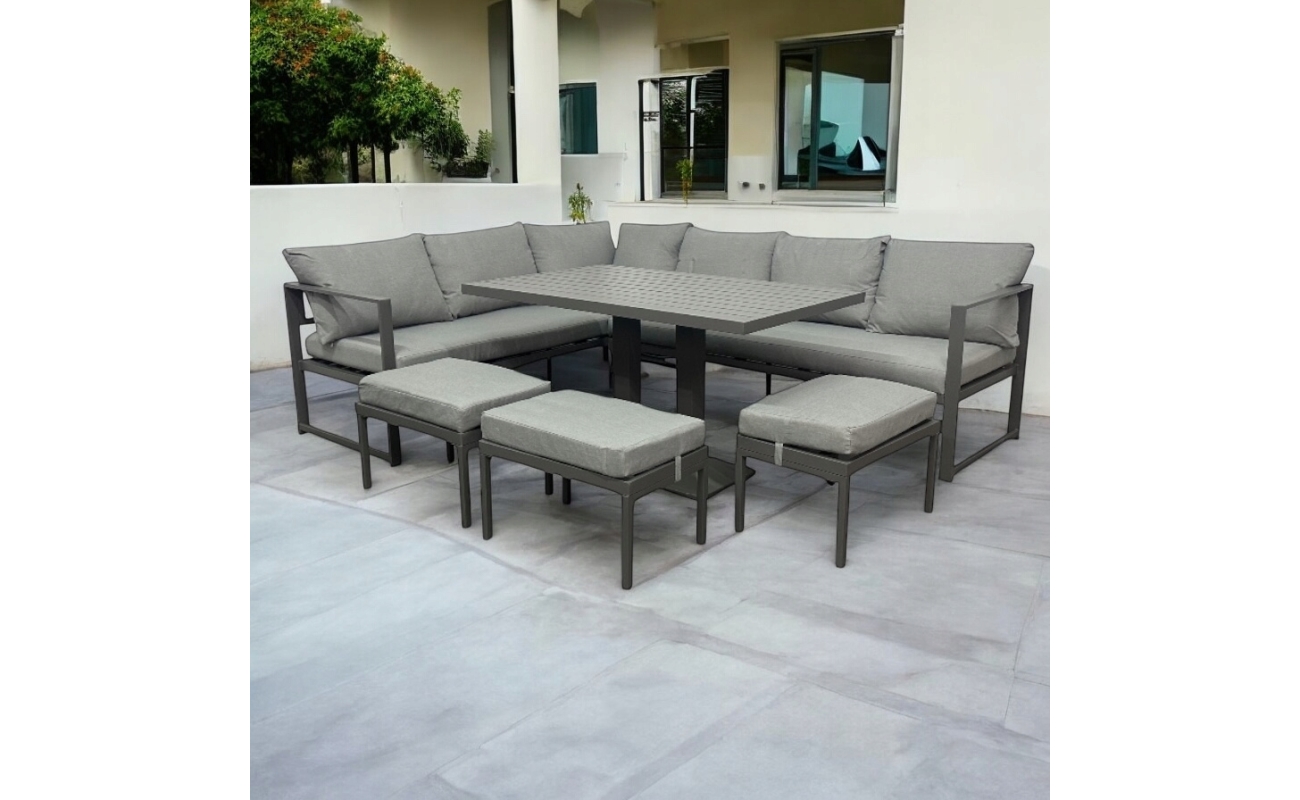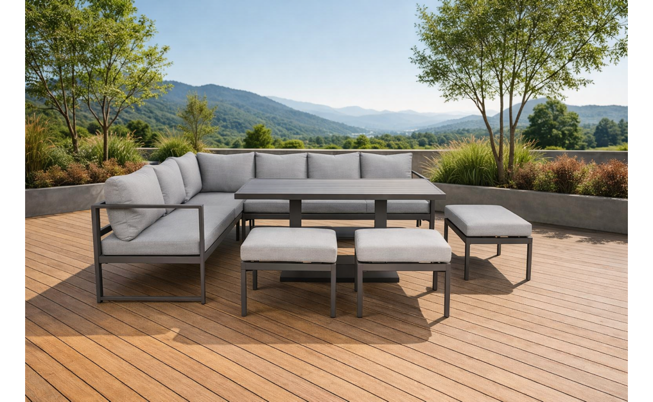 • Nowoczesny narożnik tarasowy szary, a więc modny i ponadczasowy design