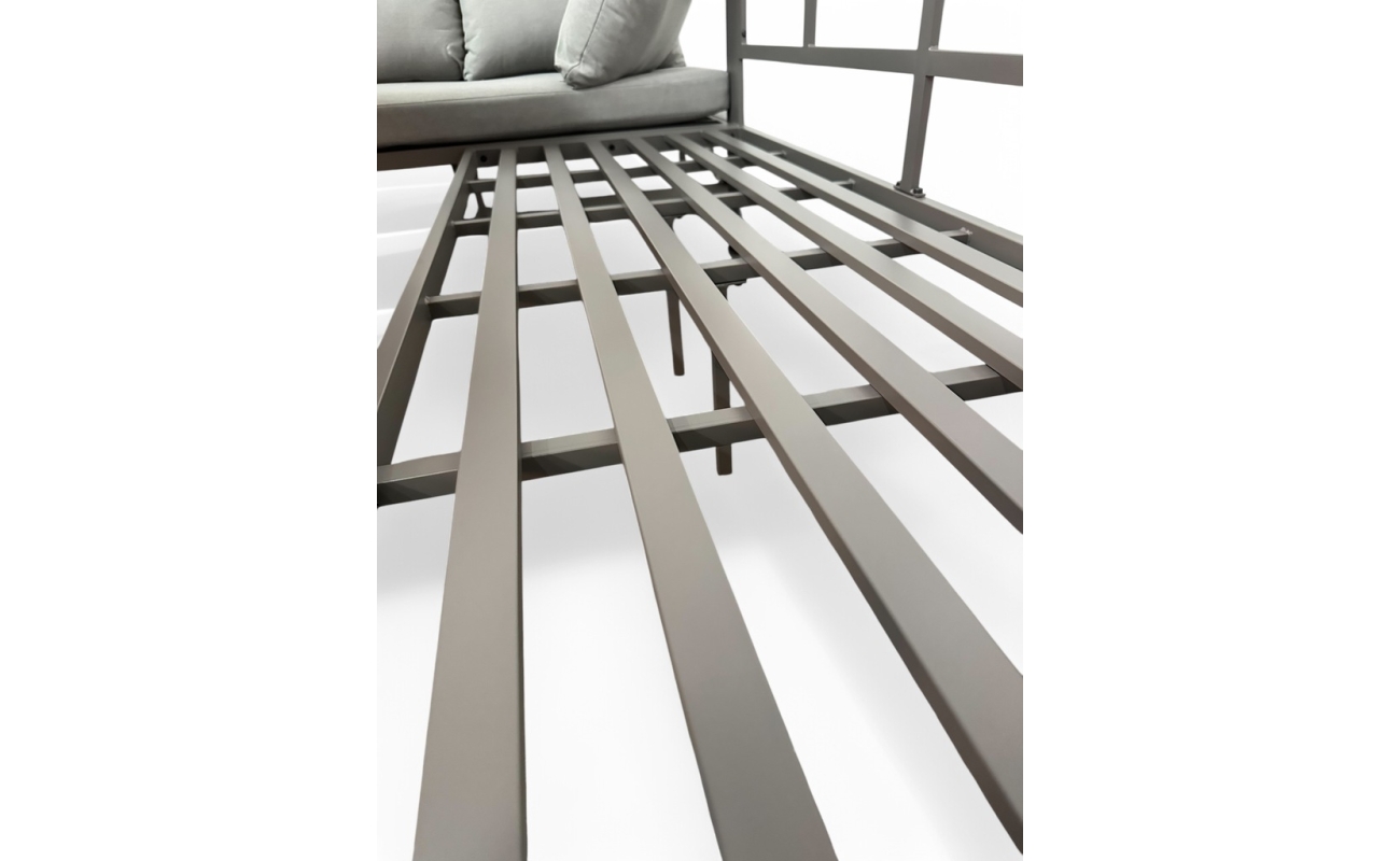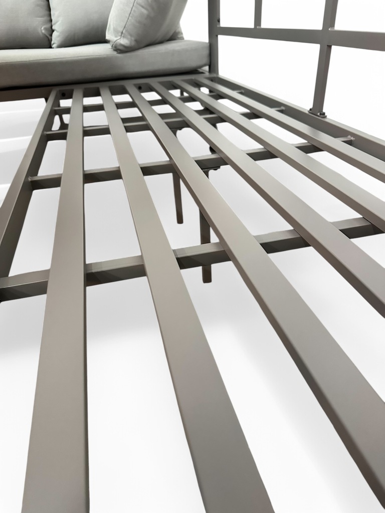 Szkielet mebli wykonany jest z galwanizowanej stali malowanej proszkowo, co zapewnia nie tylko nowoczesny wygląd, ale również doskonałą odporność na rdzę, wilgoć, promieniowanie UV i inne czynniki atmosferyczne. To inwestycja w meble, które będą Ci służyć przez wiele sezonów – bez konieczności konserwacji.