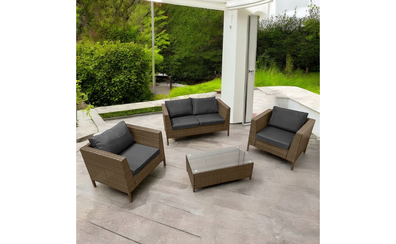 Ogrodowy zestaw z technorattanu COSTA Jasny Brąz 4 osobowy