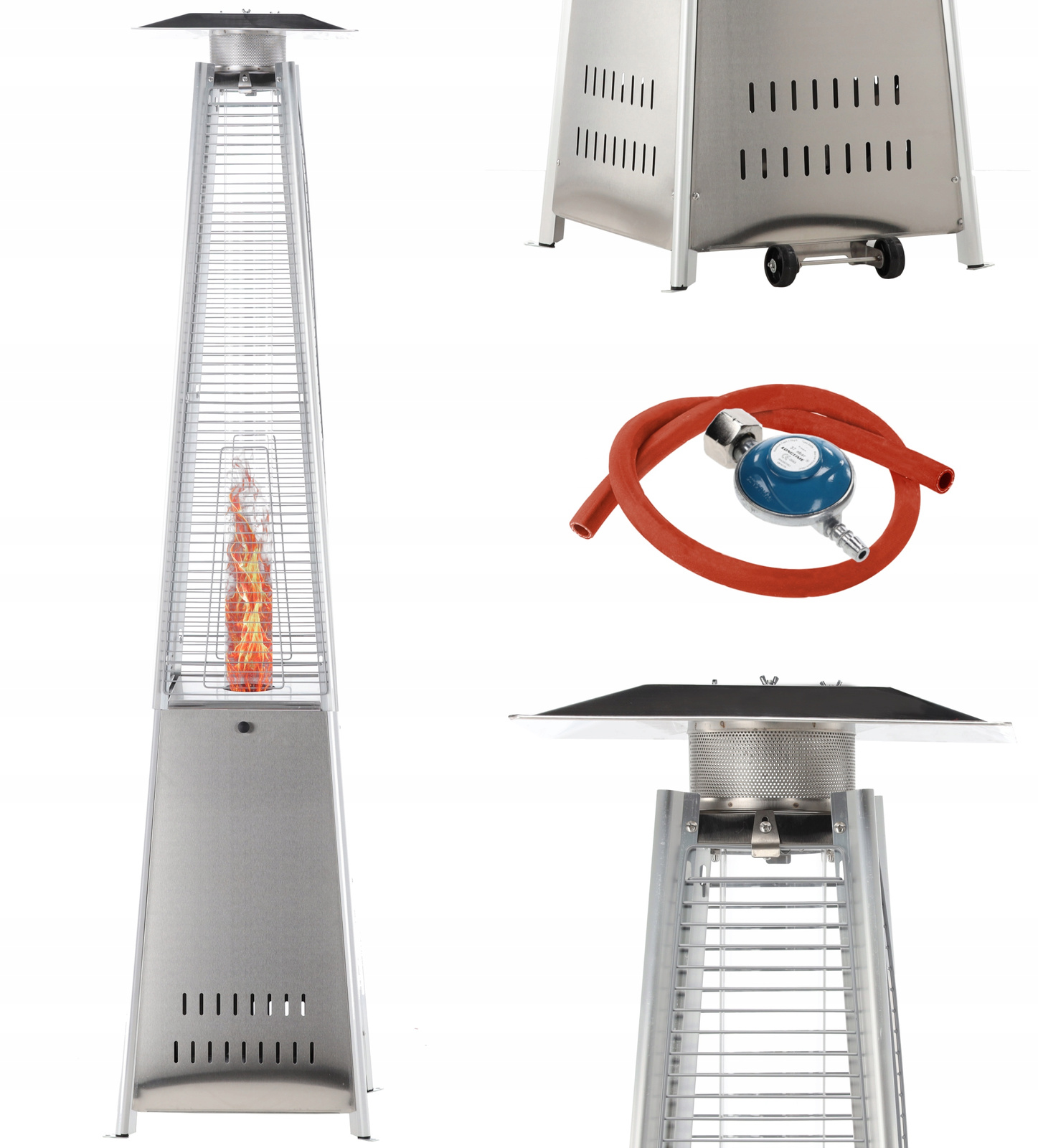 Ogrzewacz Gazowy Piramida to urządzenie, które idealnie pasuje do ogrodu, tarasu oraz ogródka restauracyjnego. Zapewnia komfort cieplny i wyjątkową atmosferę, a jednocześnie wyróżnia się solidnym wykonaniem ze stali nierdzewnej. Dzięki temu jest odporny na wilgoć, wiatr oraz inne warunki pogodowe. Co więcej, szklana tuba sprawia, że płomień wygląda niezwykle efektownie i dodaje uroku każdej przestrzeni.