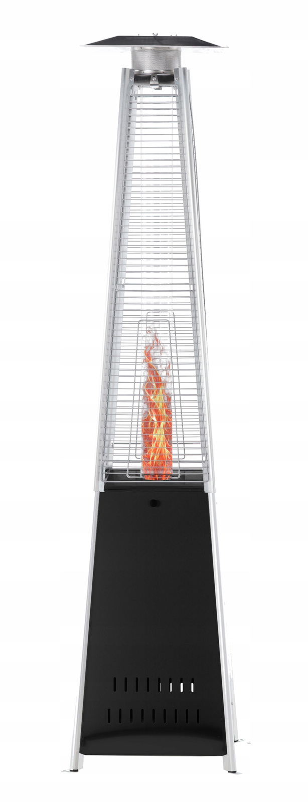 Ogrzewacz Ogrodowy Piramida to idealne rozwiązanie dla osób, które chcą cieszyć się ciepłem nawet w chłodniejsze dni. Dzięki wykonaniu ze stali proszkowanej urządzenie jest trwałe, odporne na warunki atmosferyczne i prezentuje się bardzo stylowo w każdej przestrzeni. Czarny kolor dodaje mu nowoczesnego charakteru, dlatego doskonale pasuje do ogrodów, tarasów oraz ogródków restauracyjnych.