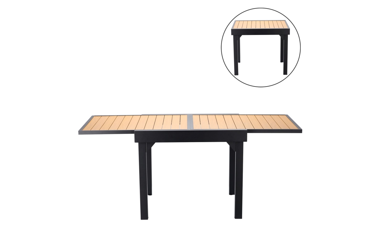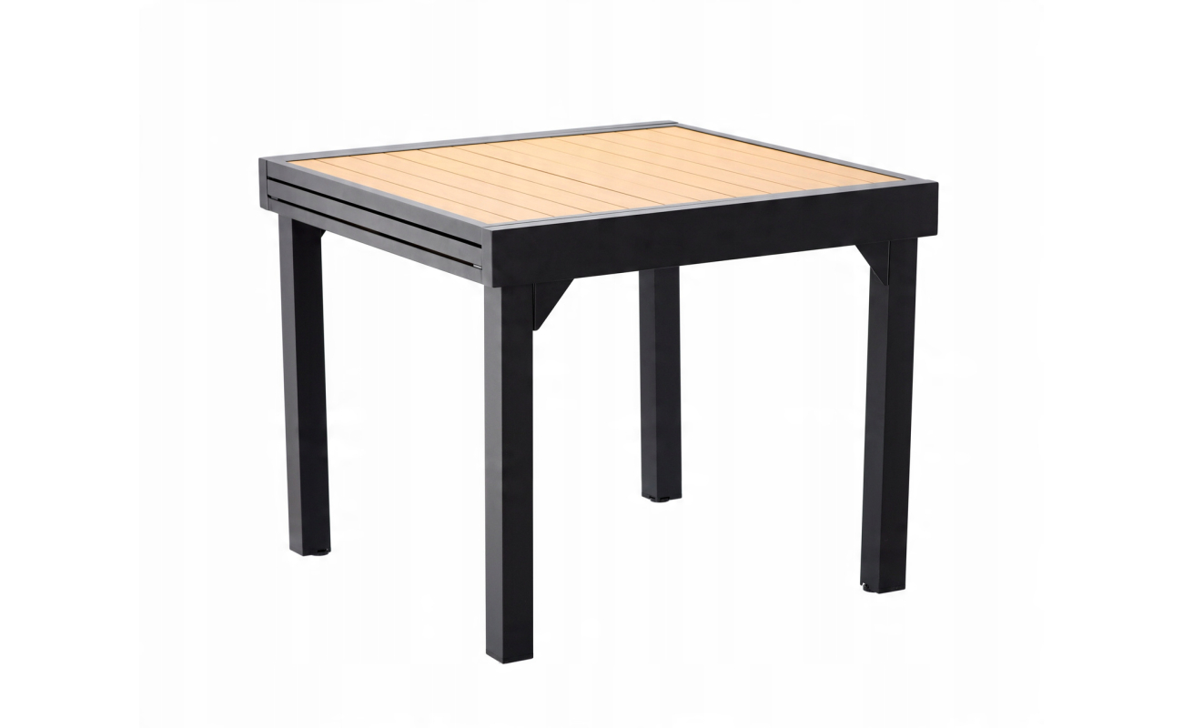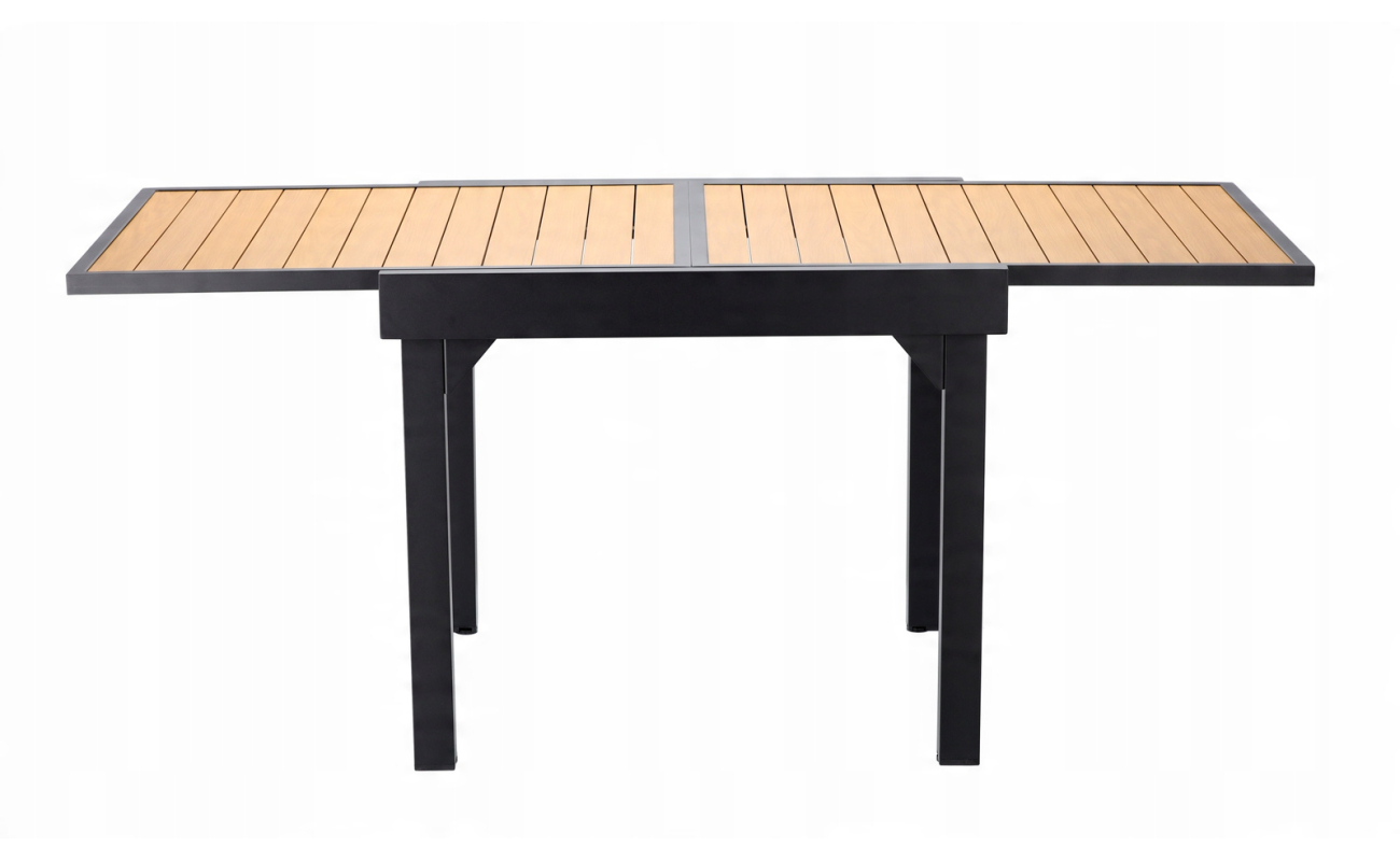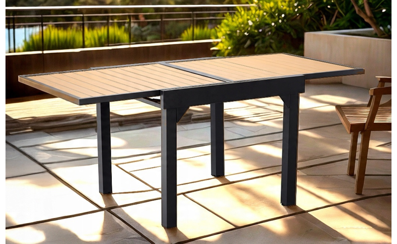 Naturalny odcień blatu z polywoodu pięknie komponuje się z nowoczesną ramą z aluminium. Dzięki temu stół wygląda elegancko i stylowo w każdej aranżacji – od nowoczesnych po klasyczne. Co więcej, neutralne barwy sprawiają, że łatwo dopasujesz go do pozostałych mebli ogrodowych, tworząc spójną i przytulną przestrzeń.