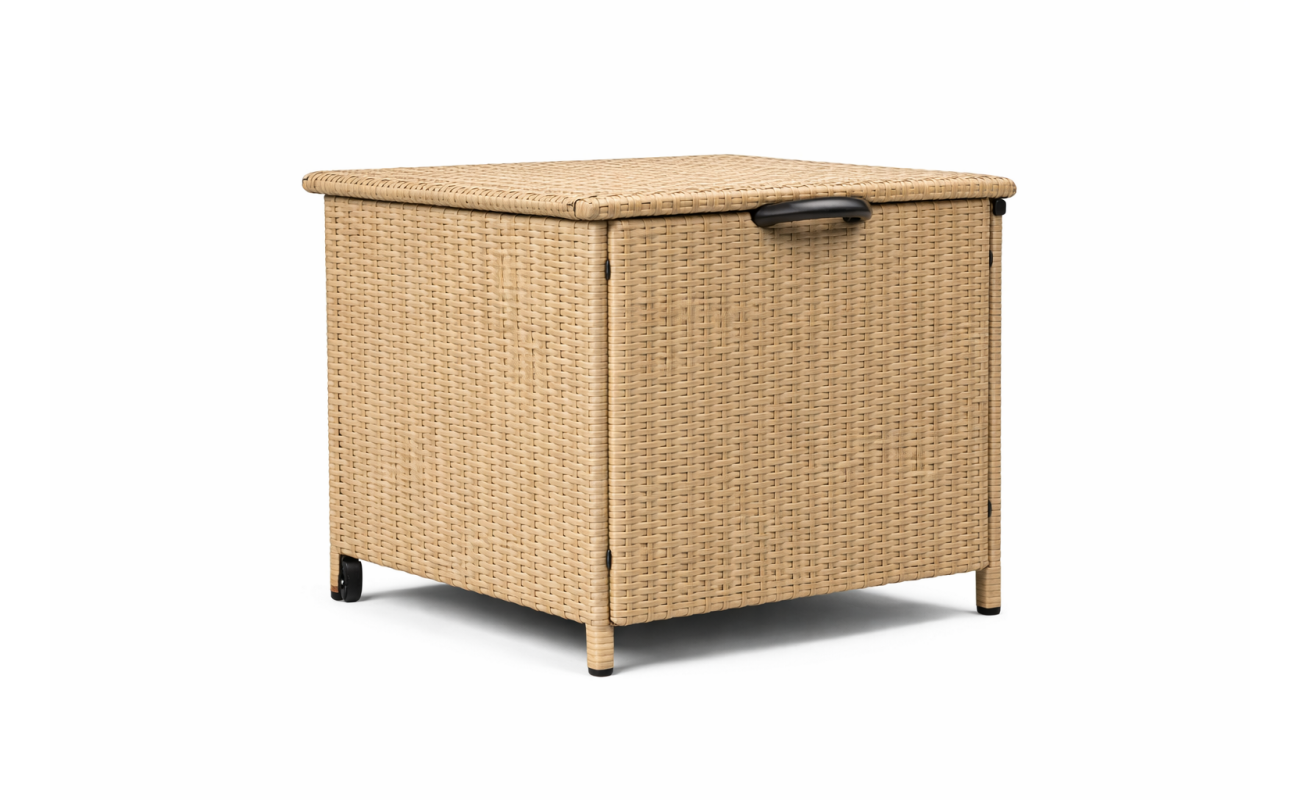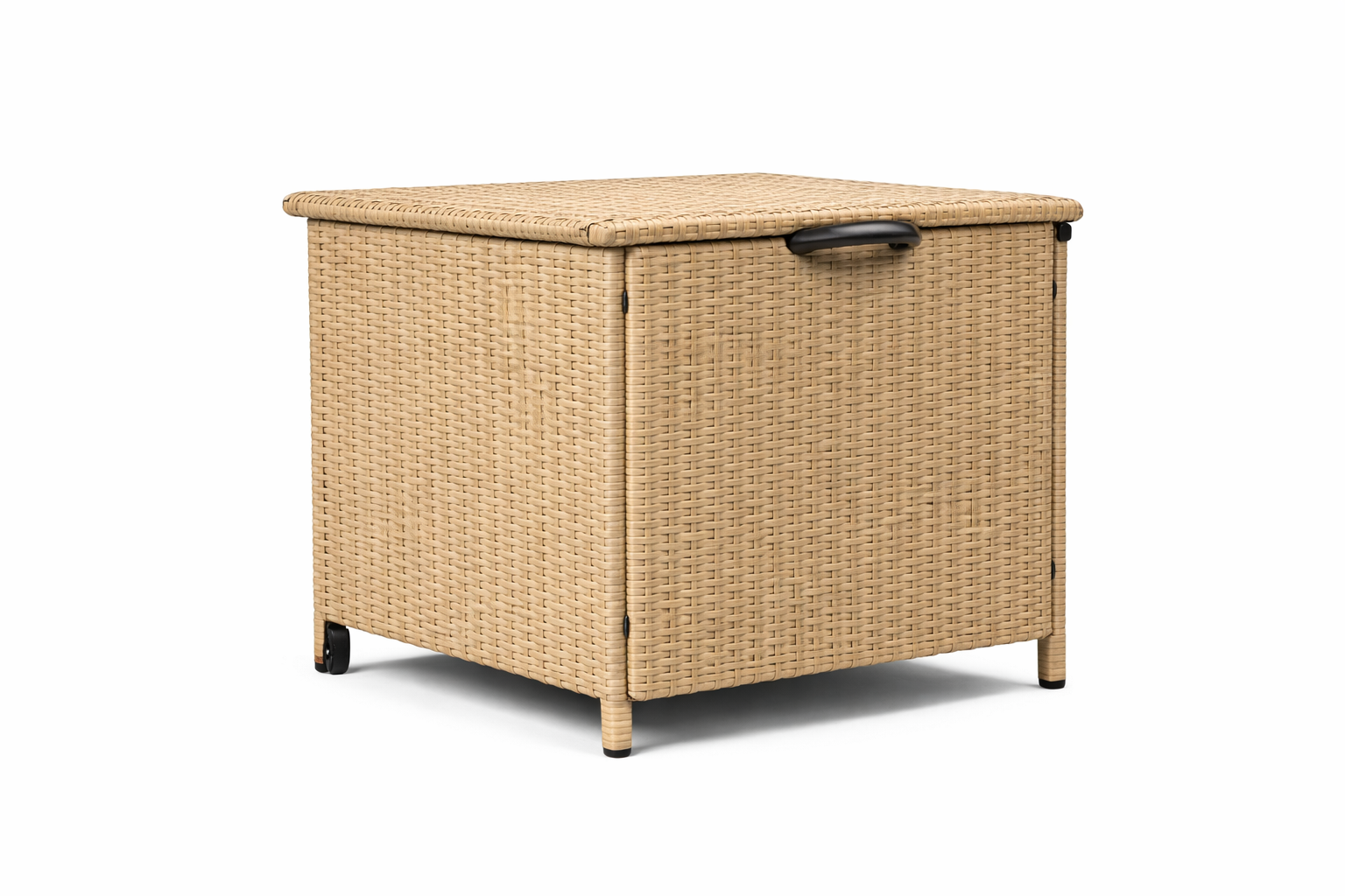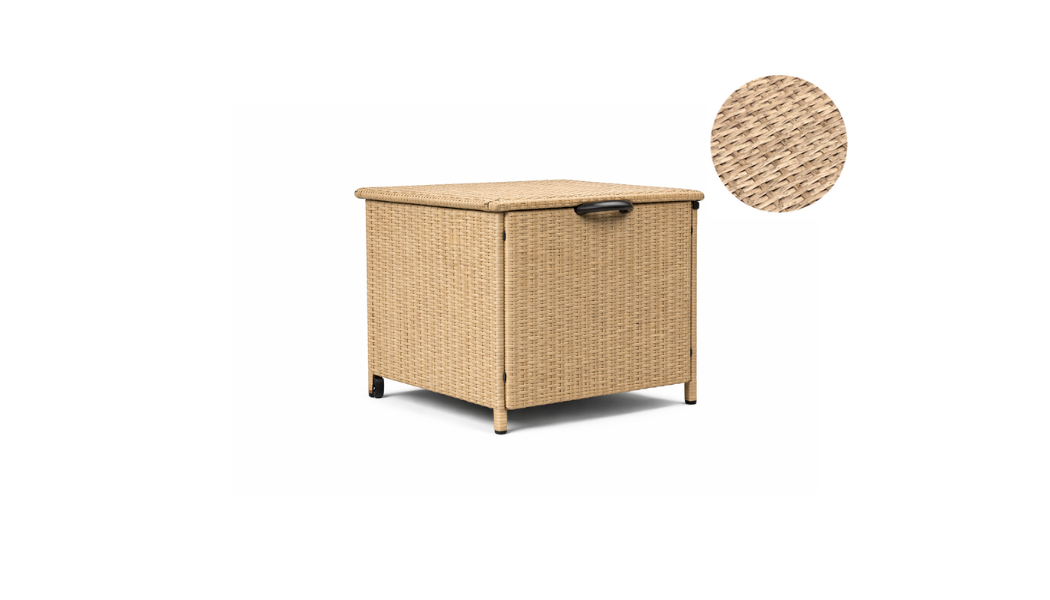 Skrzynia została wykonana z wysokiej jakości technorattanu, który jest odporny zarówno na promienie UV, jak i na zmienne warunki atmosferyczne. Co więcej, nie odbarwia się pod wpływem słońca i nie niszczy się pod wpływem deszczu.