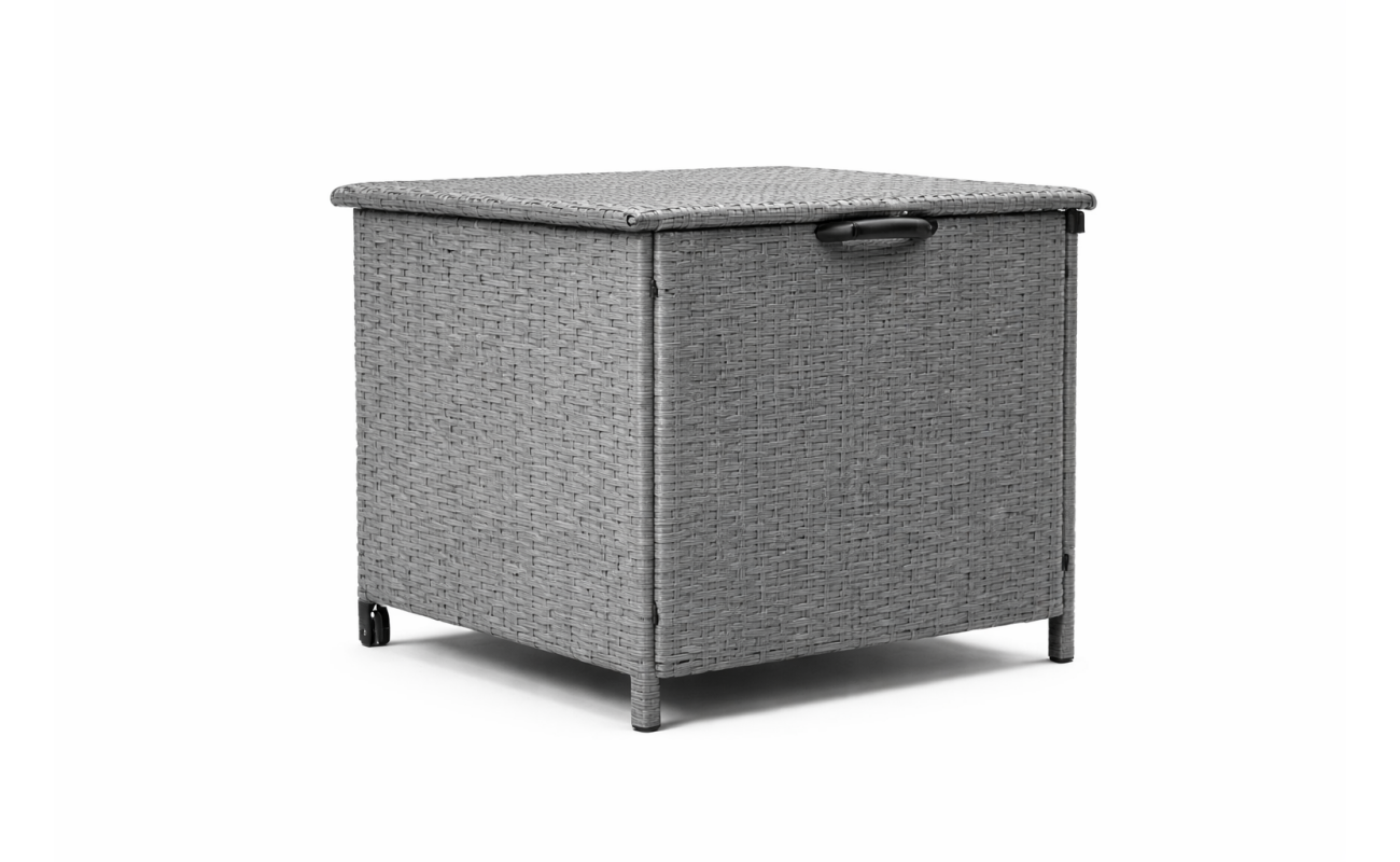 Skrzynia ogrodowa technorattanowa w kolorze szarym to doskonałe połączenie funkcjonalności i elegancji. Co więcej, dzięki kompaktowej formie i neutralnej kolorystyce, idealnie dopasowuje się do nowoczesnych zestawów mebli tarasowych. Świetnie sprawdzi się jako pojemnik na poduszki, koce, narzędzia ogrodowe, a nawet zabawki dziecięce – dlatego zyskujesz dodatkową przestrzeń i porządek w strefie relaksu.