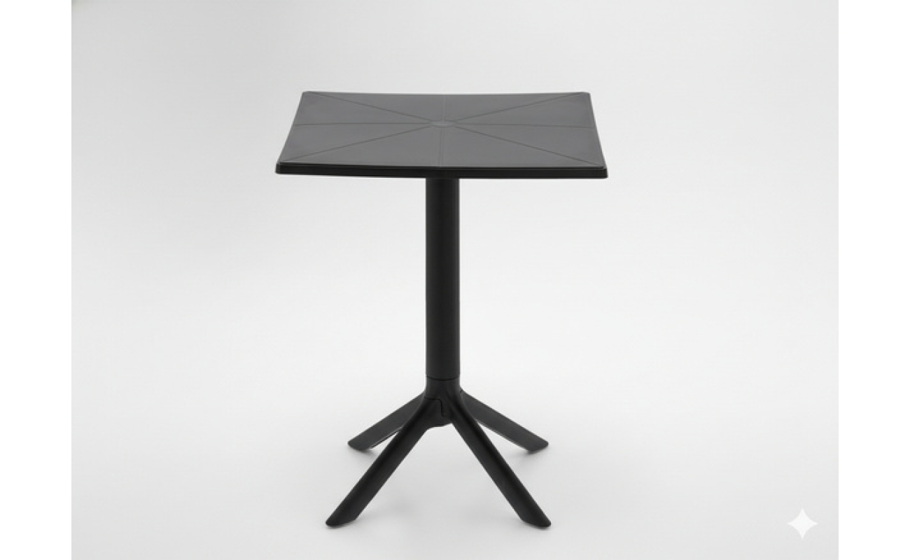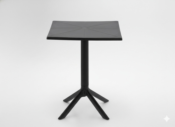 Stolik wyróżnia się klasycznym, kwadratowym blatem i czarną kolorystyką. Dzięki temu pasuje do różnych mebli – zarówno drewnianych, jak i metalowych. Ponadto, dzięki wykonaniu z trwałego tworzywa sztucznego, nie wymaga impregnacji czy specjalnej pielęgnacji. Jest gotowy do użycia od razu po rozpakowaniu.