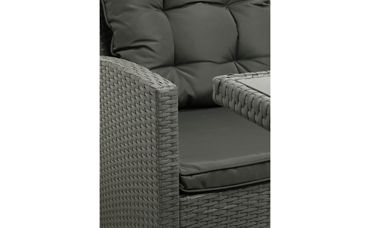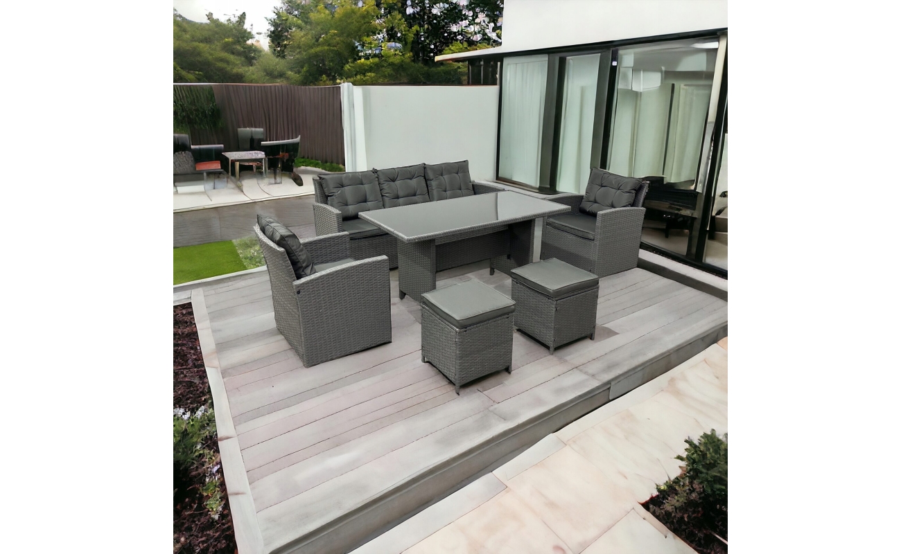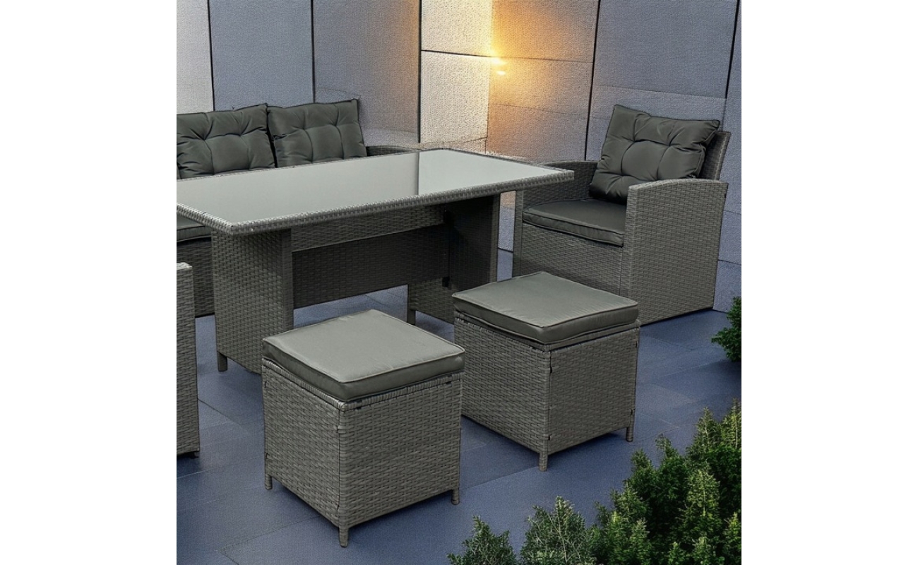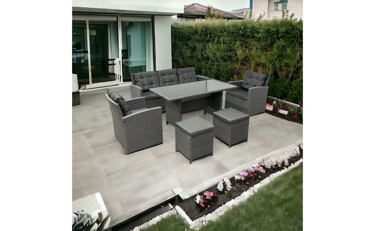 Zestaw ogrodowy technorattanowy szary Marbella to połączenie nowoczesnego wyglądu, komfortu i trwałości. Również jego neutralna kolorystyka sprawia, że łatwo wkomponować go w różne aranżacje. Dlatego jest to propozycja dla każdego, kto chce cieszyć się wygodą i estetyką bez zbędnych kompromisów.