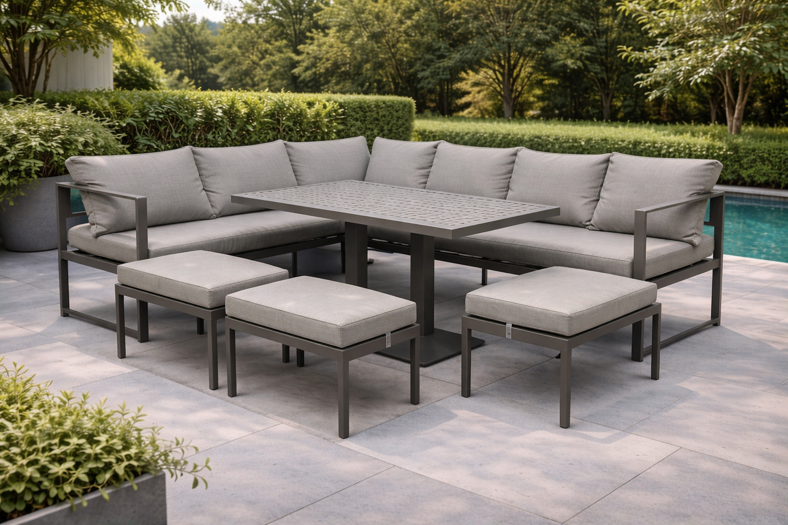 Zestaw ogrodowy z regulowanym stołem to nowoczesna i funkcjonalna propozycja do codziennego wypoczynku na świeżym powietrzu. Z jednej strony zapewnia wygodę, z drugiej – podkreśla styl przestrzeni.