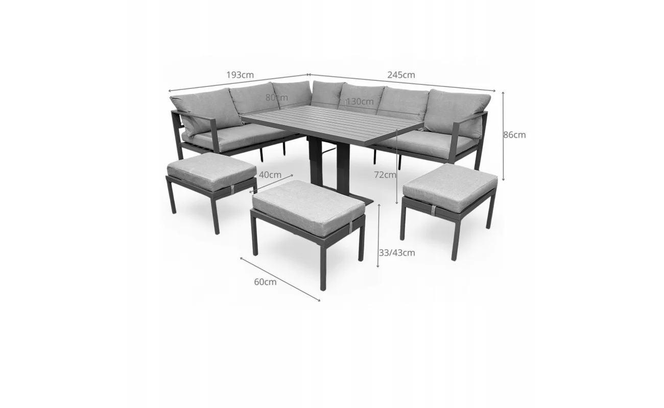Zestaw ogrodowy z regulowanym stołem – kolor szary