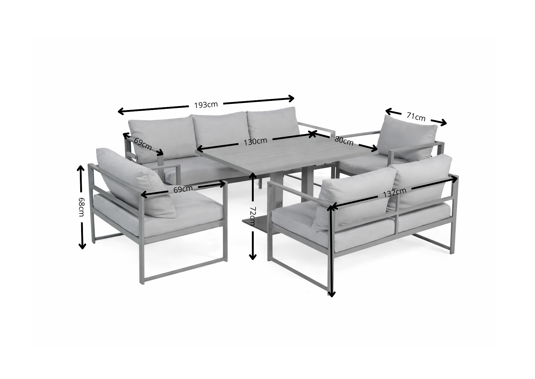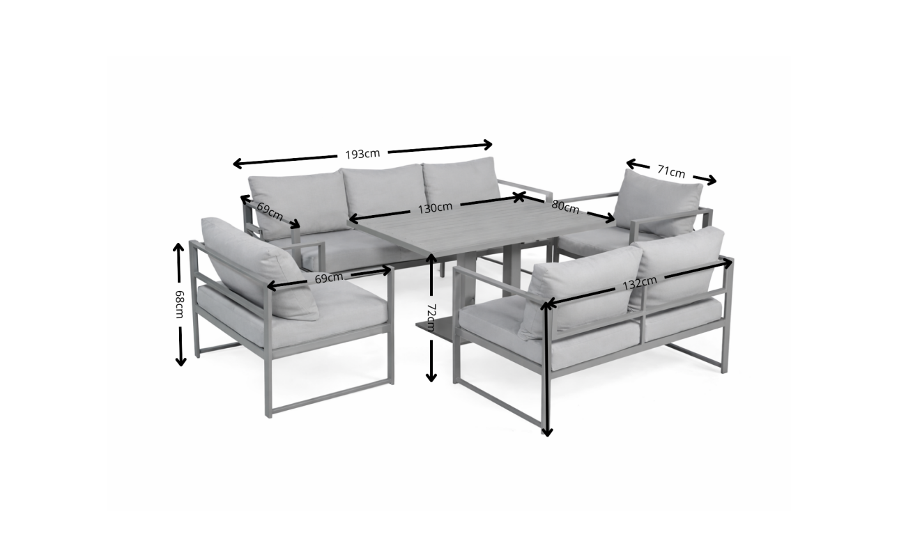 Z jednej strony meble są stabilne i odporne na rdzę, z drugiej – lekkie i łatwe do przestawienia. Dzięki temu sam zdecydujesz, jak chcesz zaaranżować swoją przestrzeń. Chcesz intymny kącik do kawy? A może większą przestrzeń do przyjęć? Ten zestaw to umożliwia.